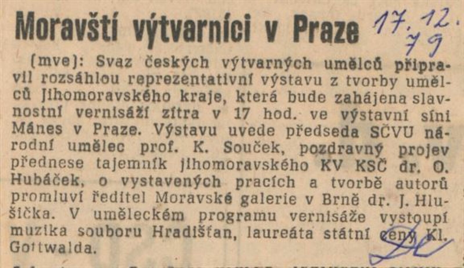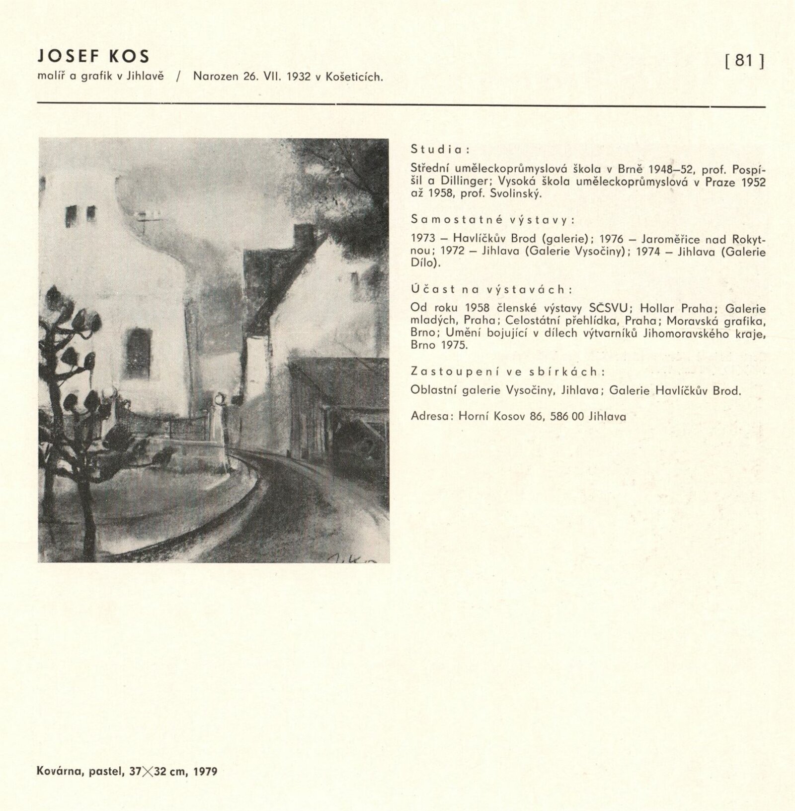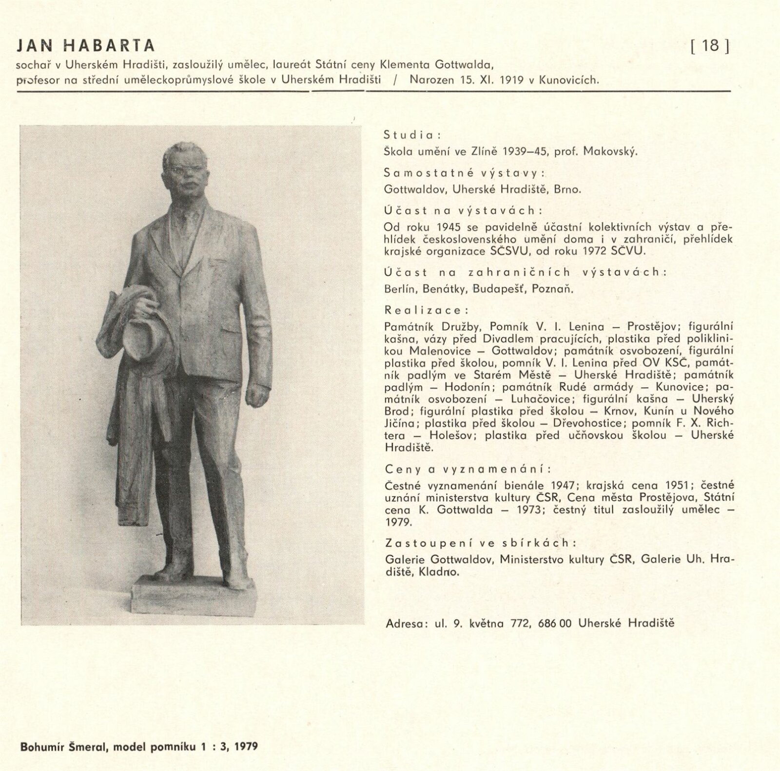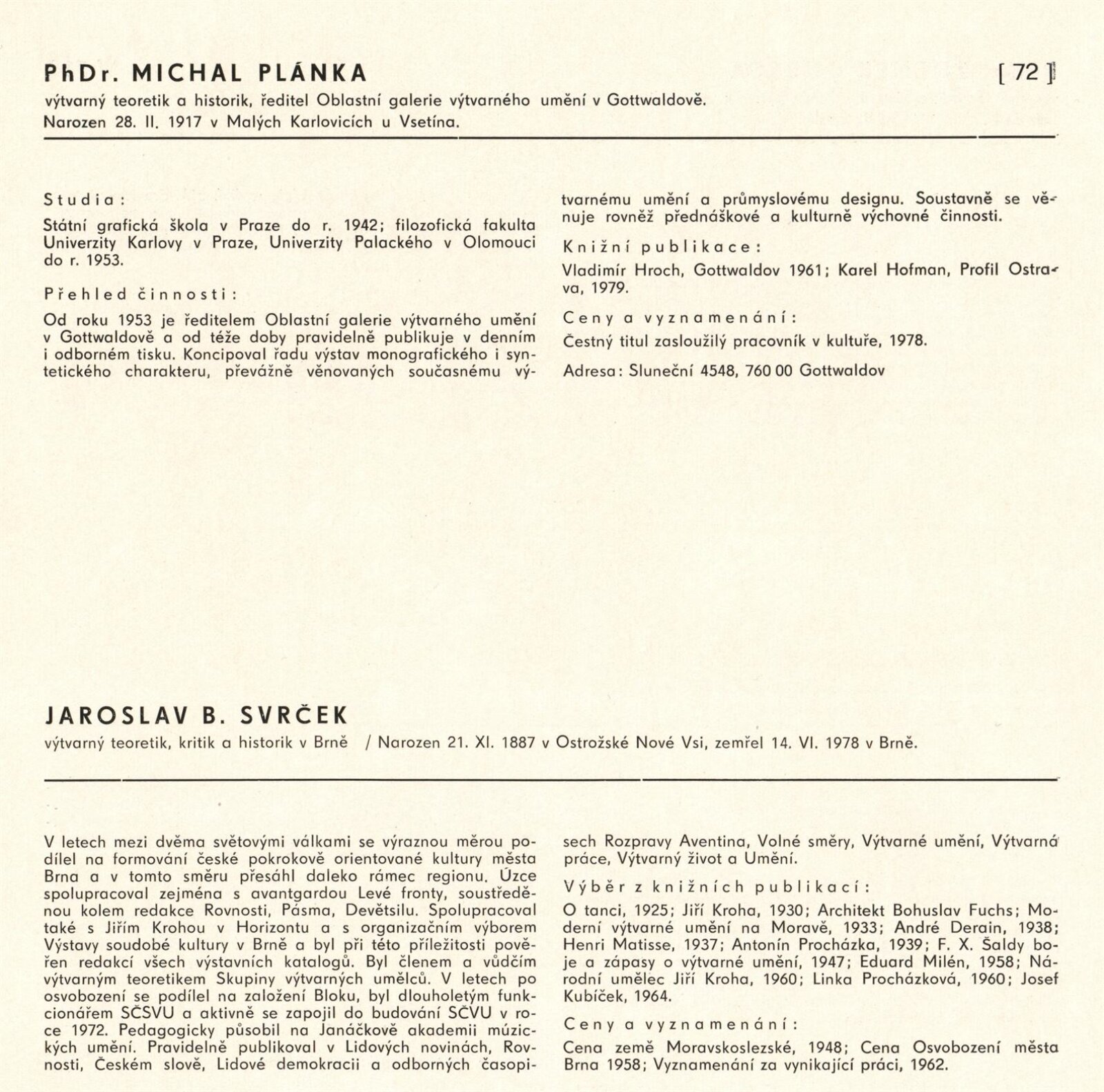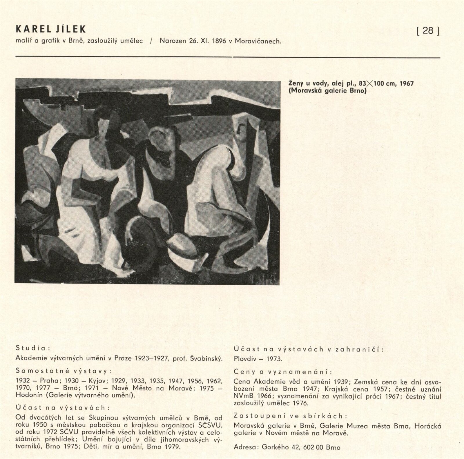 Výtvarné umění Jihomoravského kraje: Dům umění města Brna, 1. patro, 3. 4. – 1. 5. 1980 / Text: Jiří Hlušička. – Praha: SČVU, 1980. – 96 s., obr., životní data vystavujících, seznam výstav, cen, realizací, zastoupení ve sbírkách, DU 711. – MG