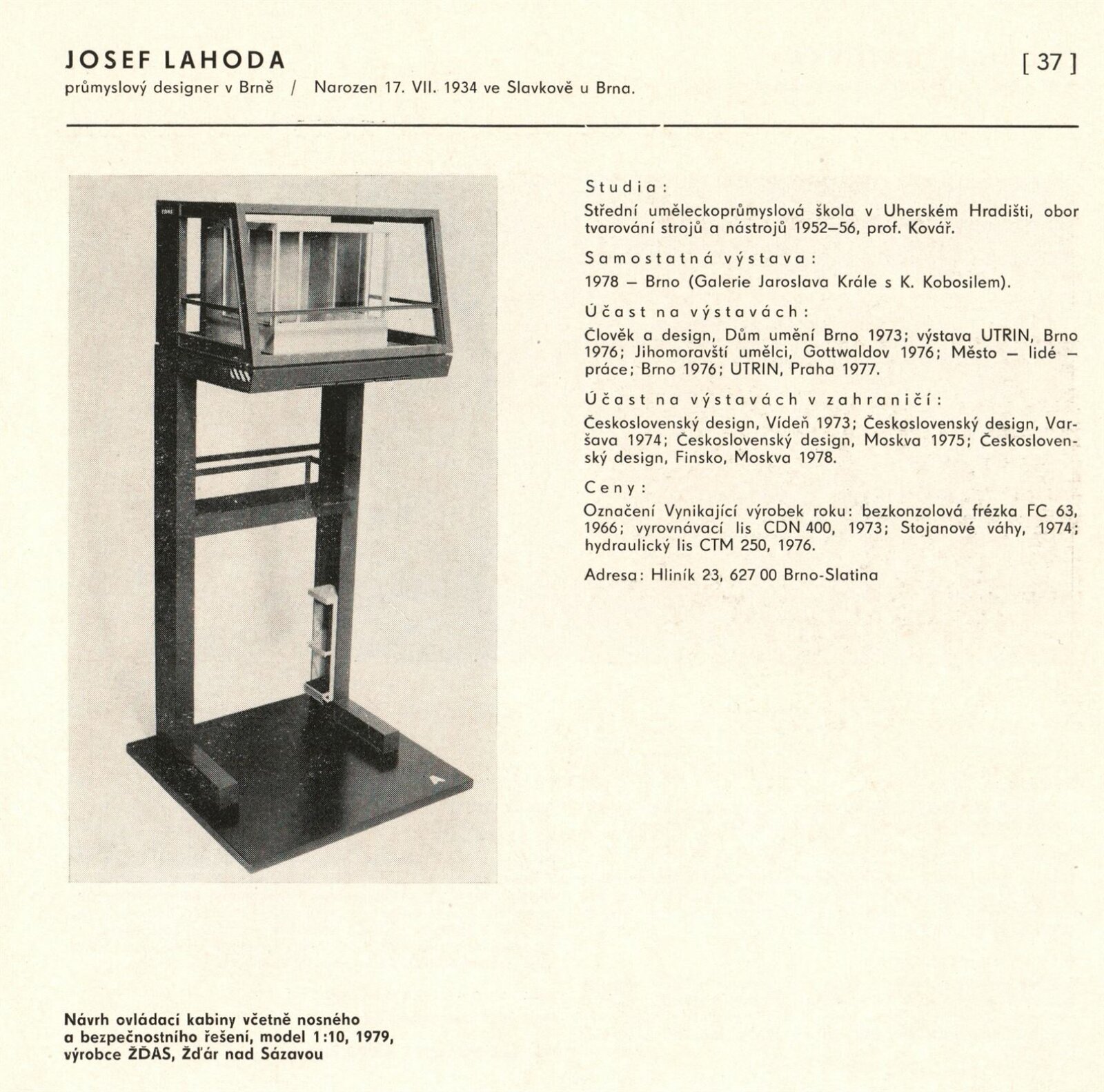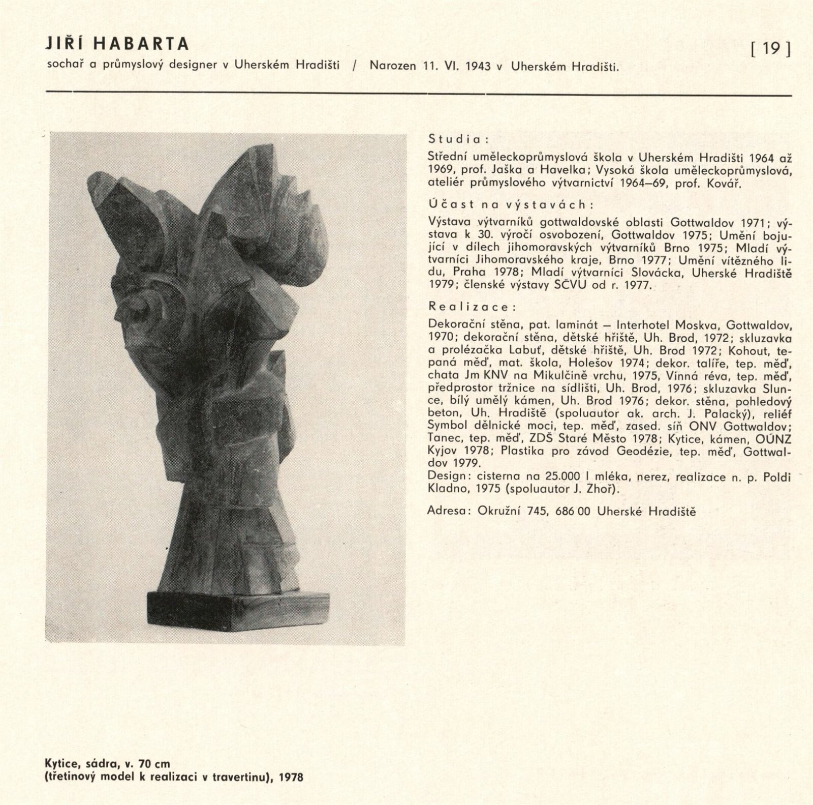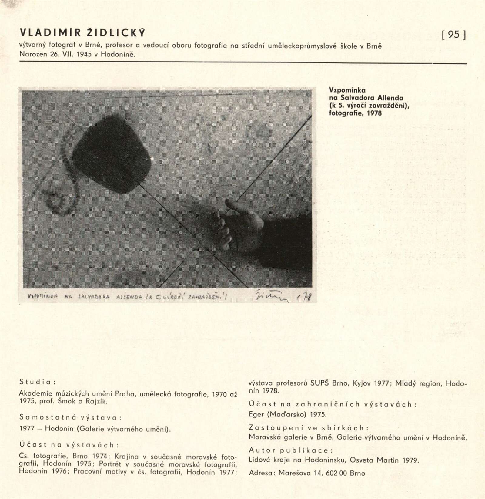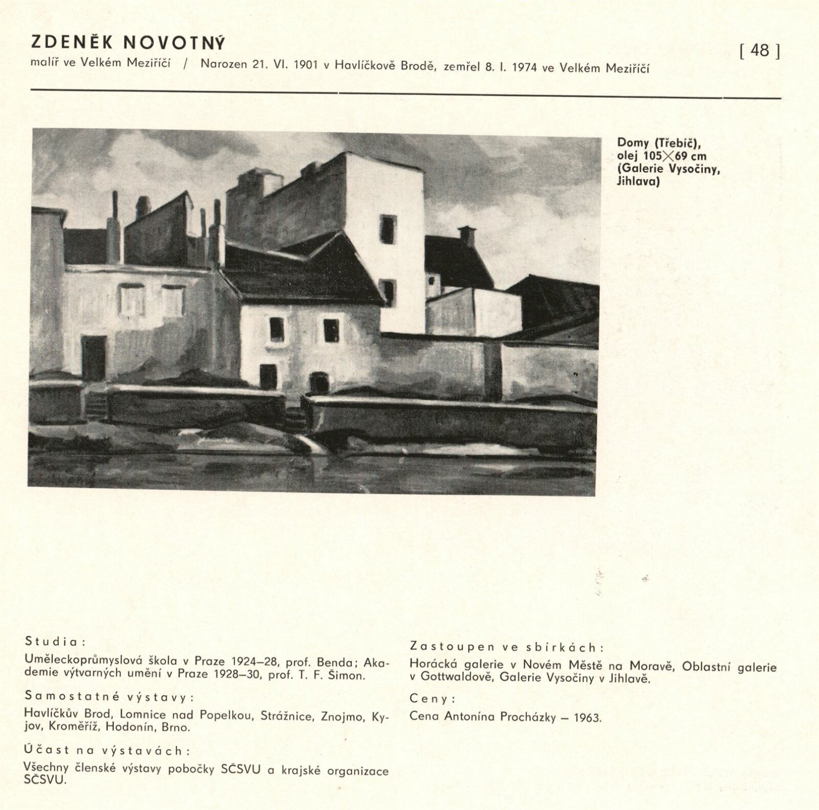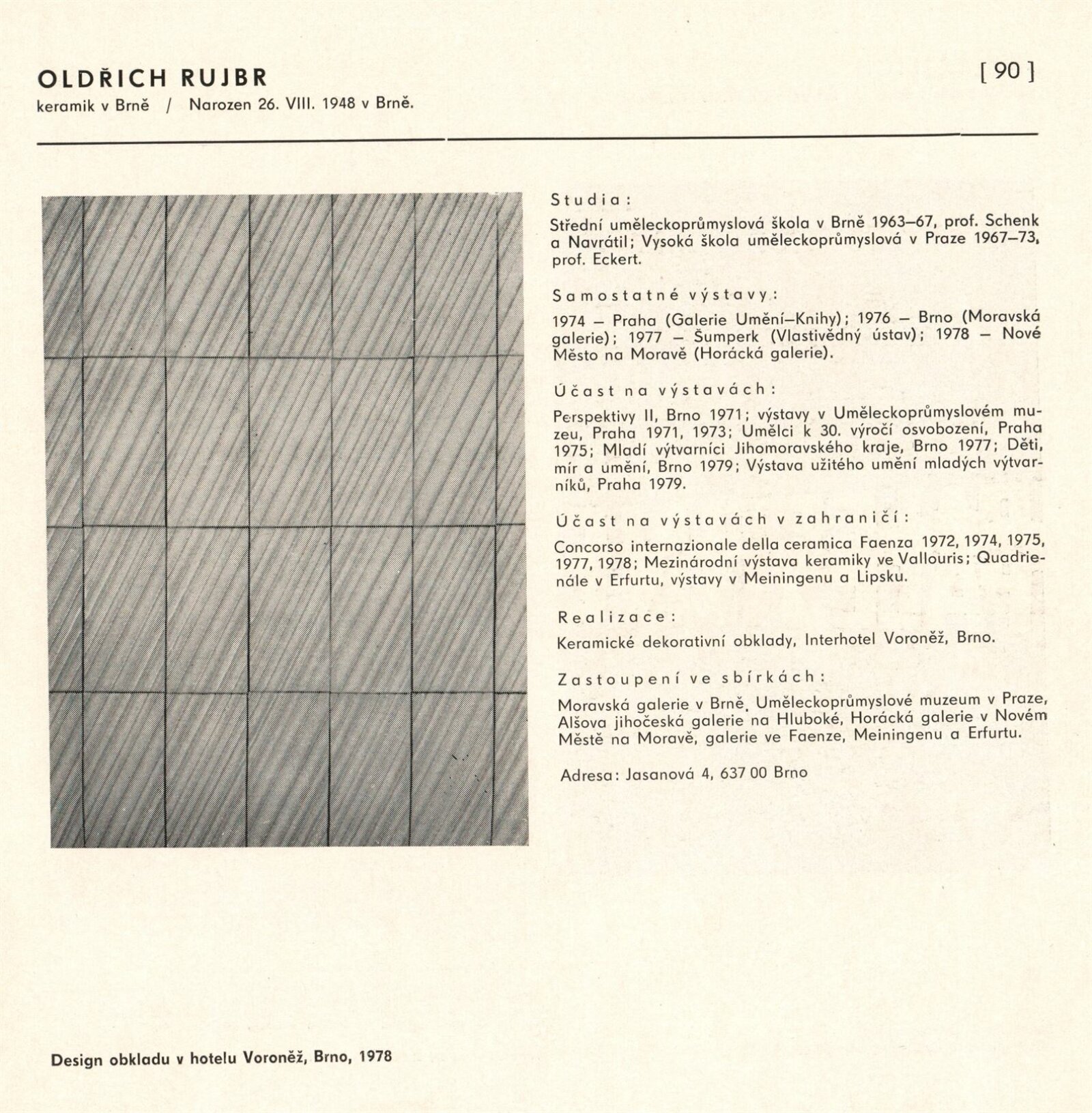 Výtvarné umění Jihomoravského kraje: Dům umění města Brna, 1. patro, 3. 4. – 1. 5. 1980 / Text: Jiří Hlušička. – Praha: SČVU, 1980. – 96 s., obr., životní data vystavujících, seznam výstav, cen, realizací, zastoupení ve sbírkách, DU 711. – MG