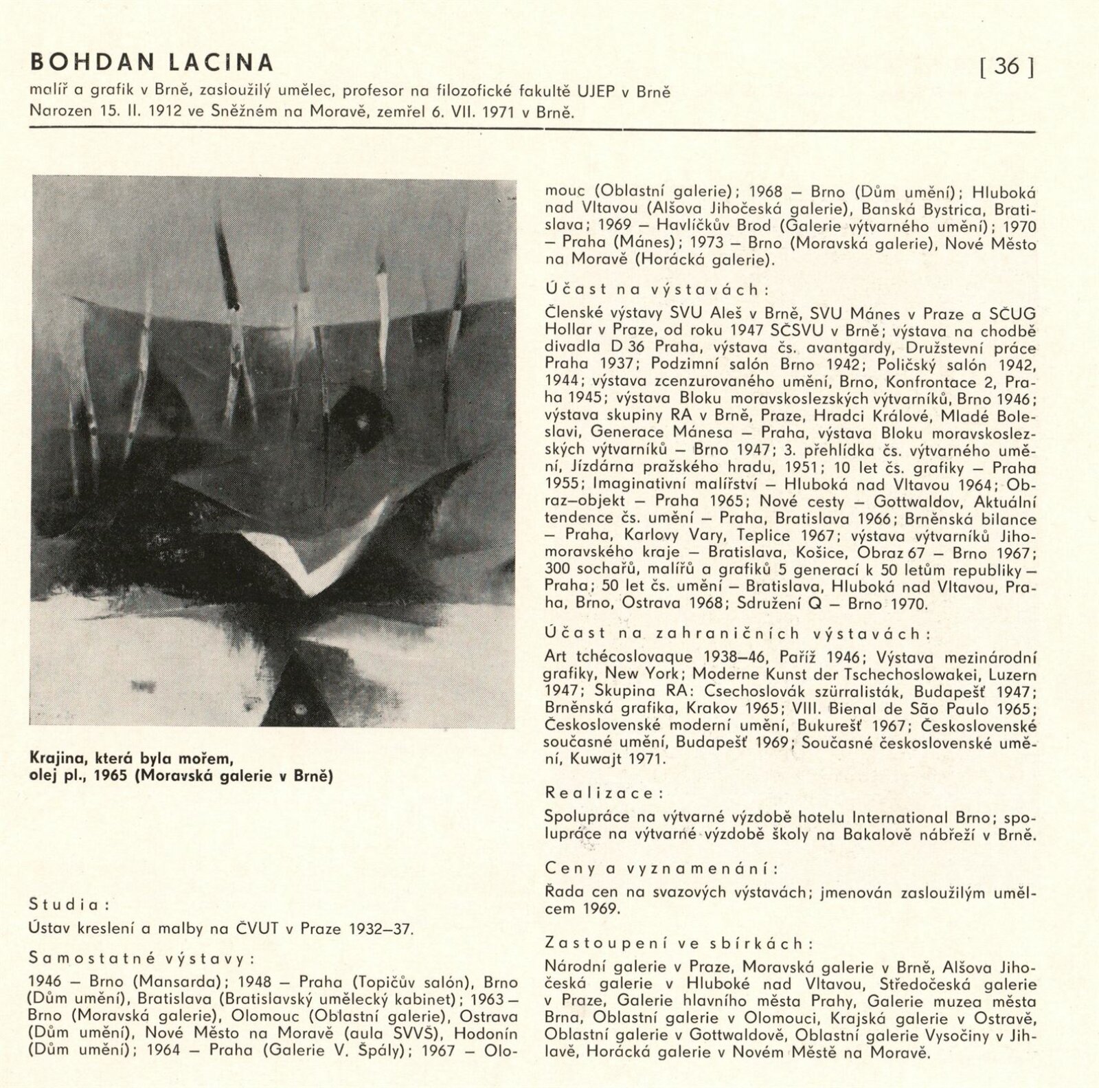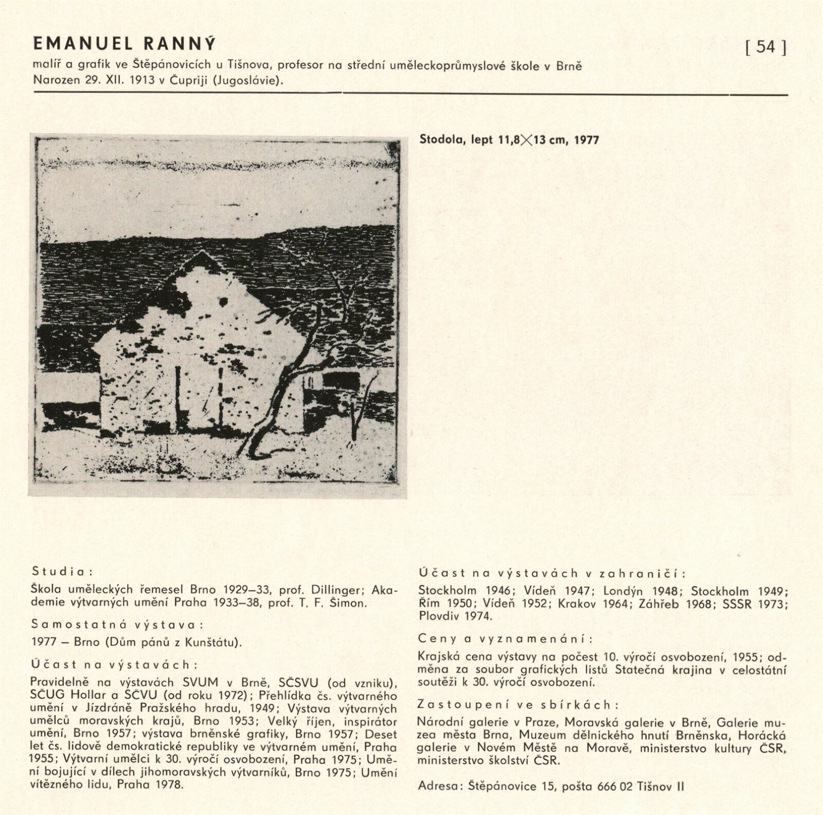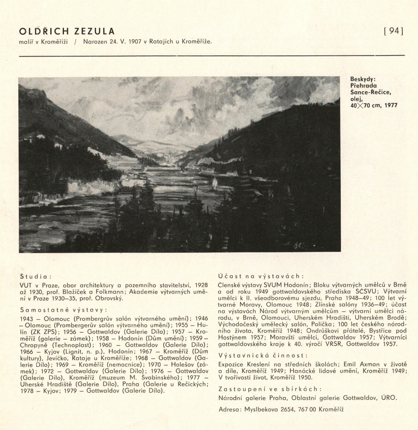 pozvánka, katalog, fotografie z vernisáže, provozní korespondence (organizace besedy, zařazení výstavy, žádost o povolení výstavy), reversy, recenze v tisku, pozvánky na výstavu v jiných městech (Praha, Trenčín)