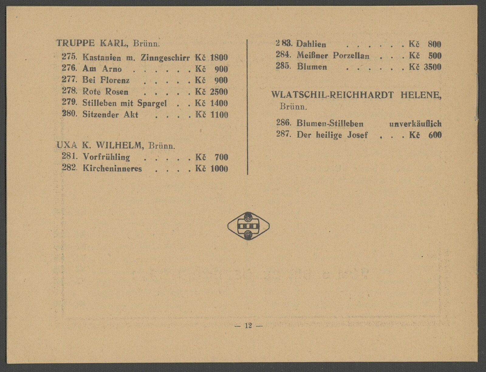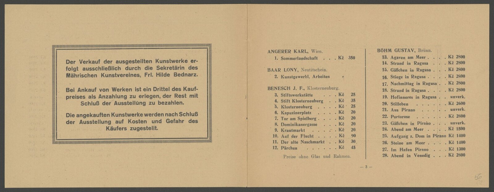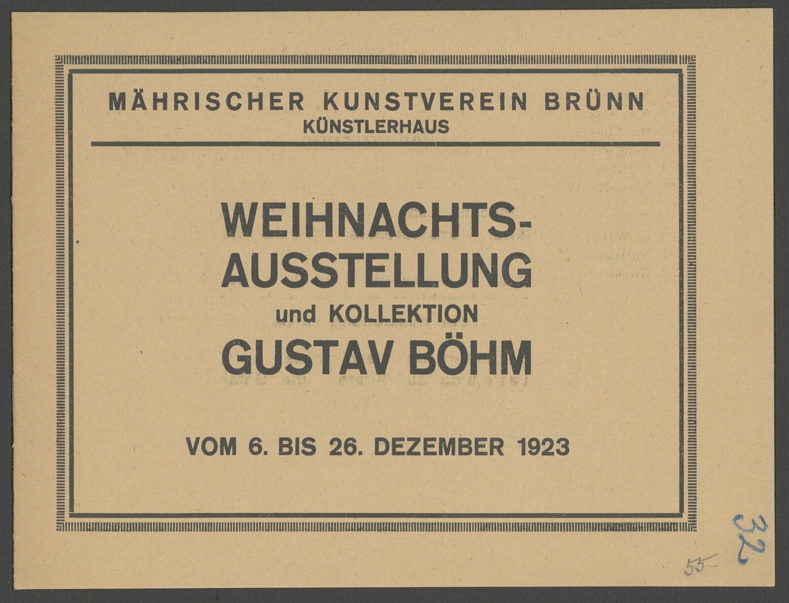 Weihnachtsausstellung und Kollektion Gustav Böhm: Mährischer Kunstverein Brünn, Künstlerhaus, 6. 12. – 26. 12. 1923 / Brünn: Mährischer Kunstverein, 1923. – 12 s. – MZA; MG