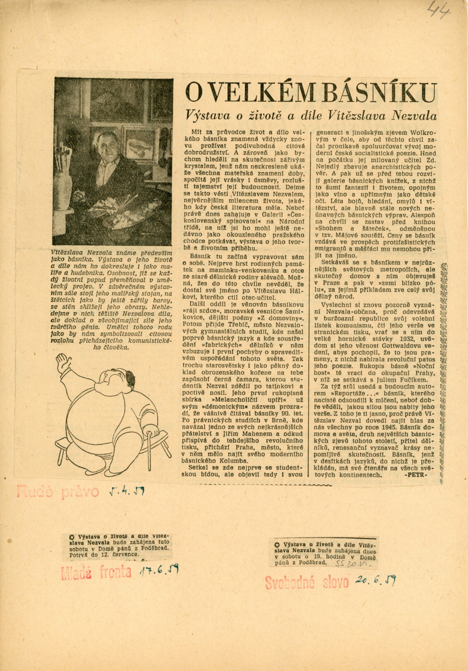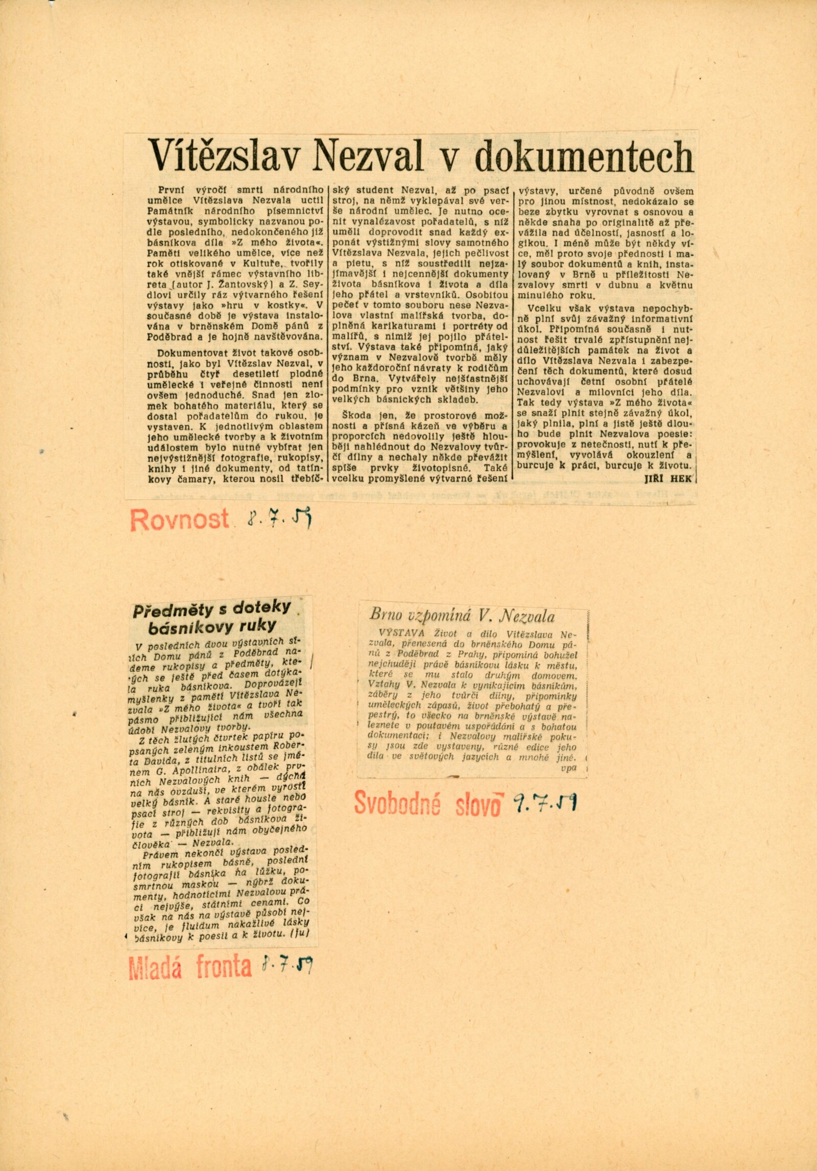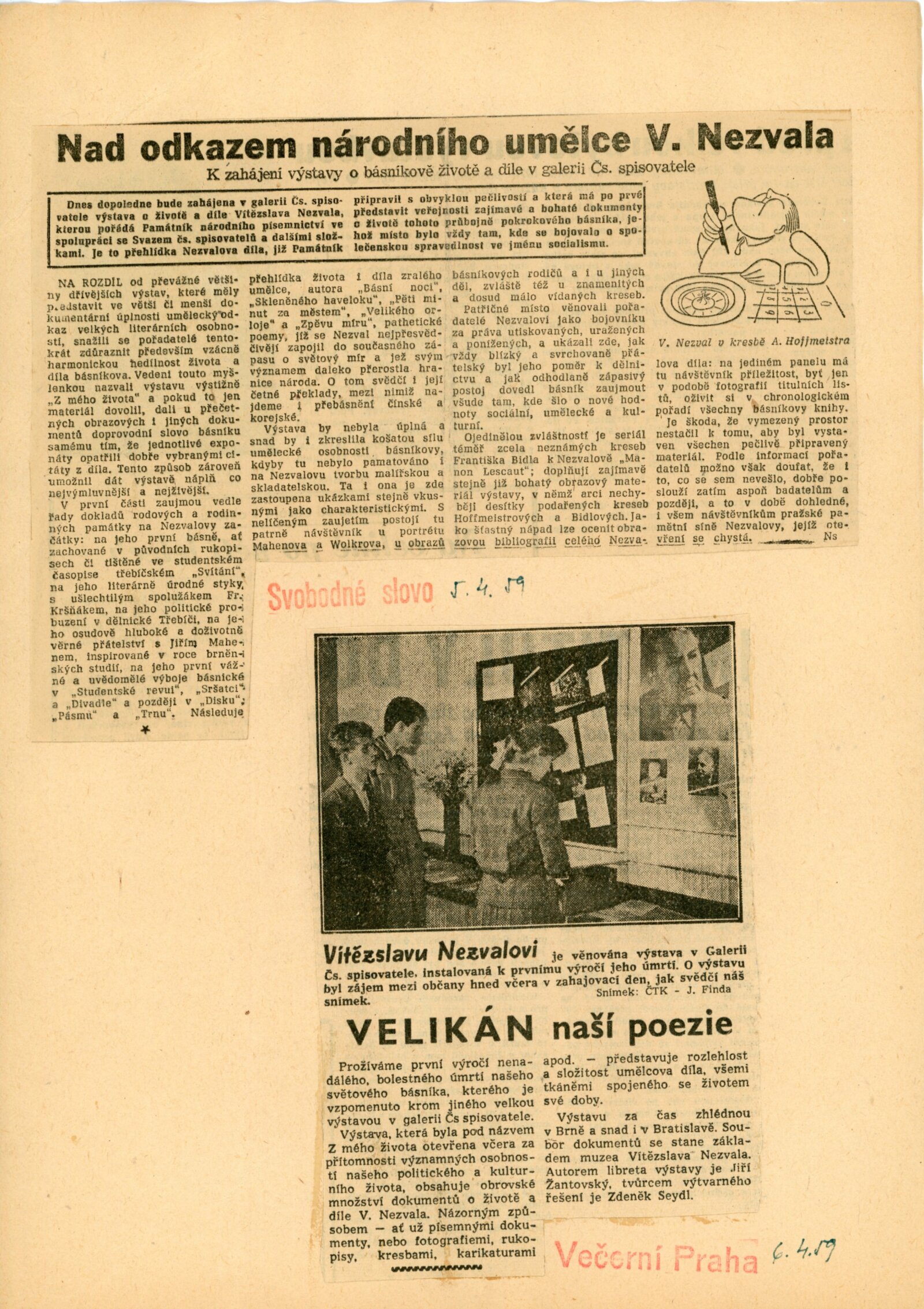 pozvánka, katalog, korespondence (provozní korespondence, dopis J. V. Plevovi), recenze v tisku