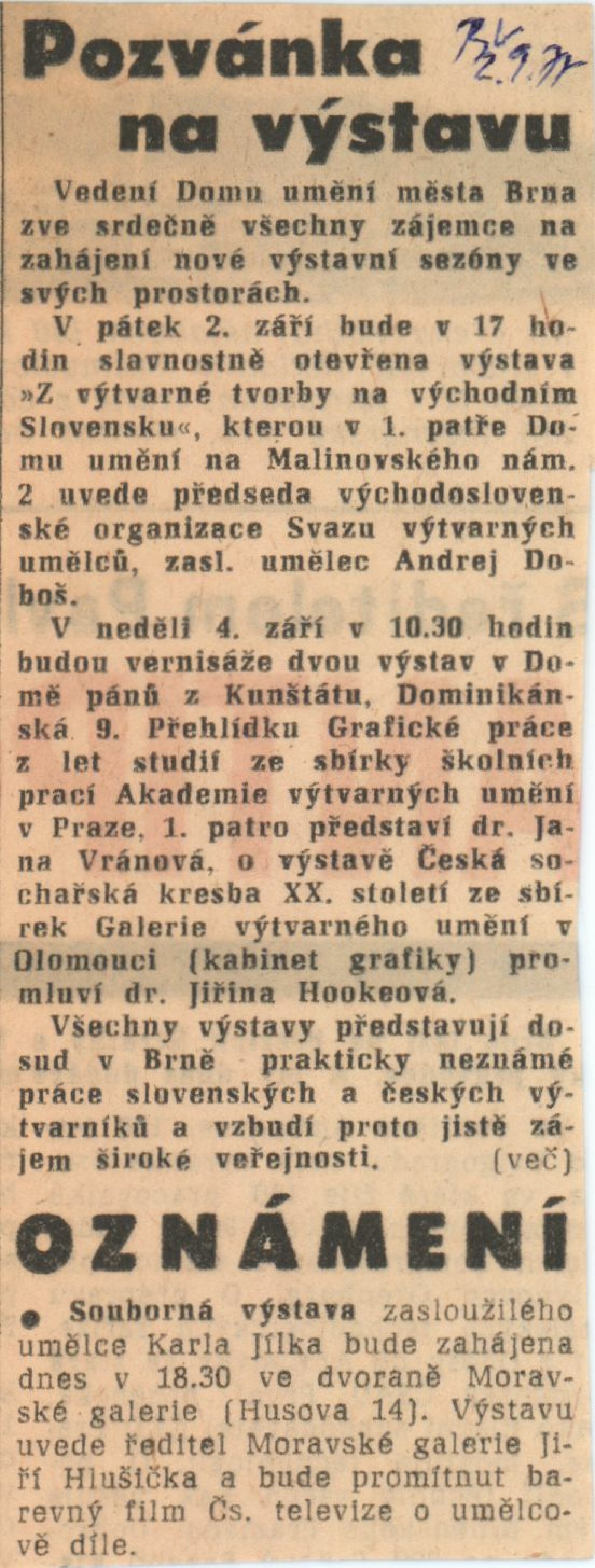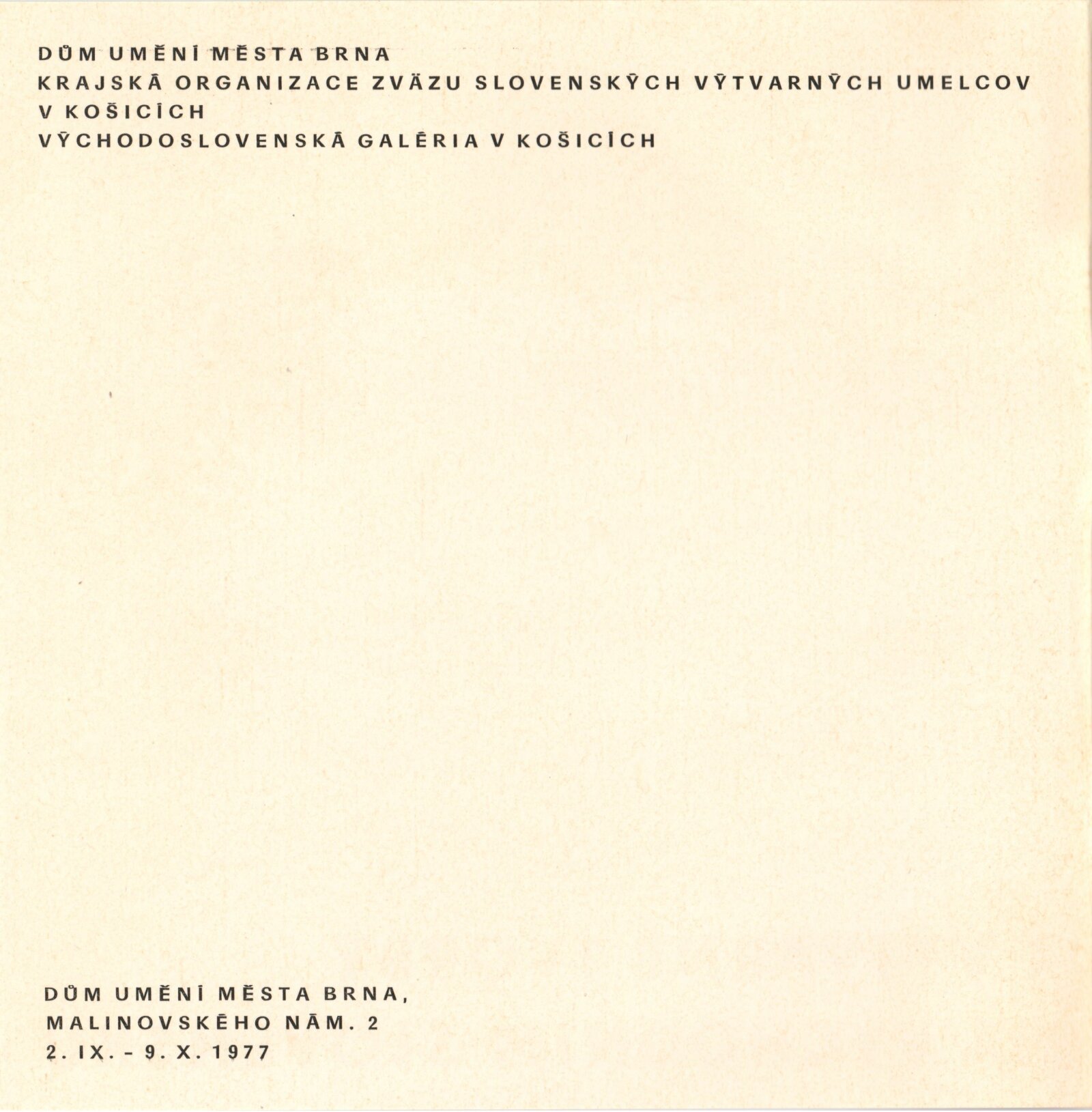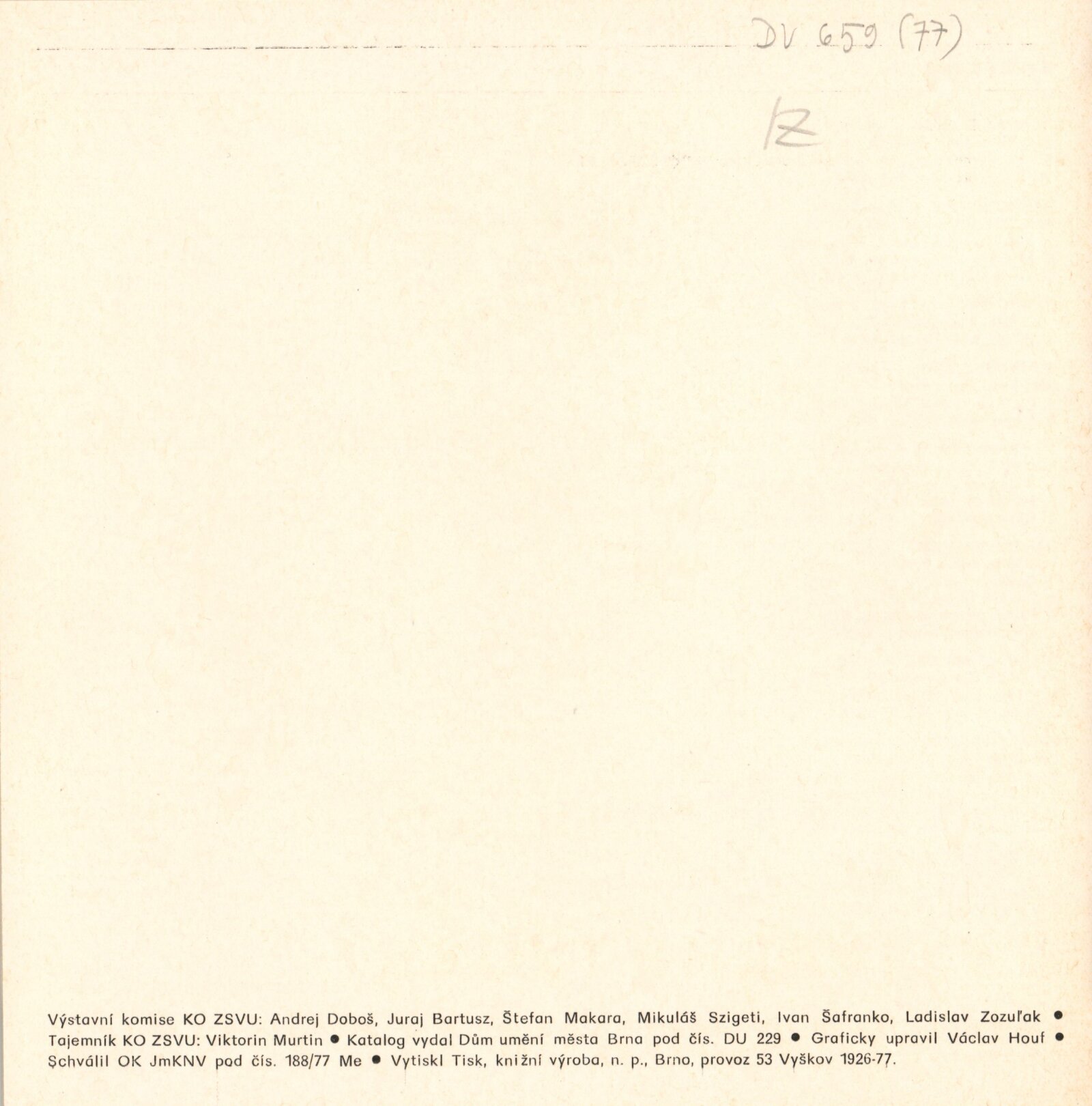 Z výtvarné tvorby na východním Slovensku. Plastika, malba, kresba, grafika: Dům umění města Brna, 2. 9. – 9. 10. 1977 / Text: Gabriela Vizdalová Haščáková. – Brno: DUmB, 1977. – 25 s., obr., DU 659. – MG
