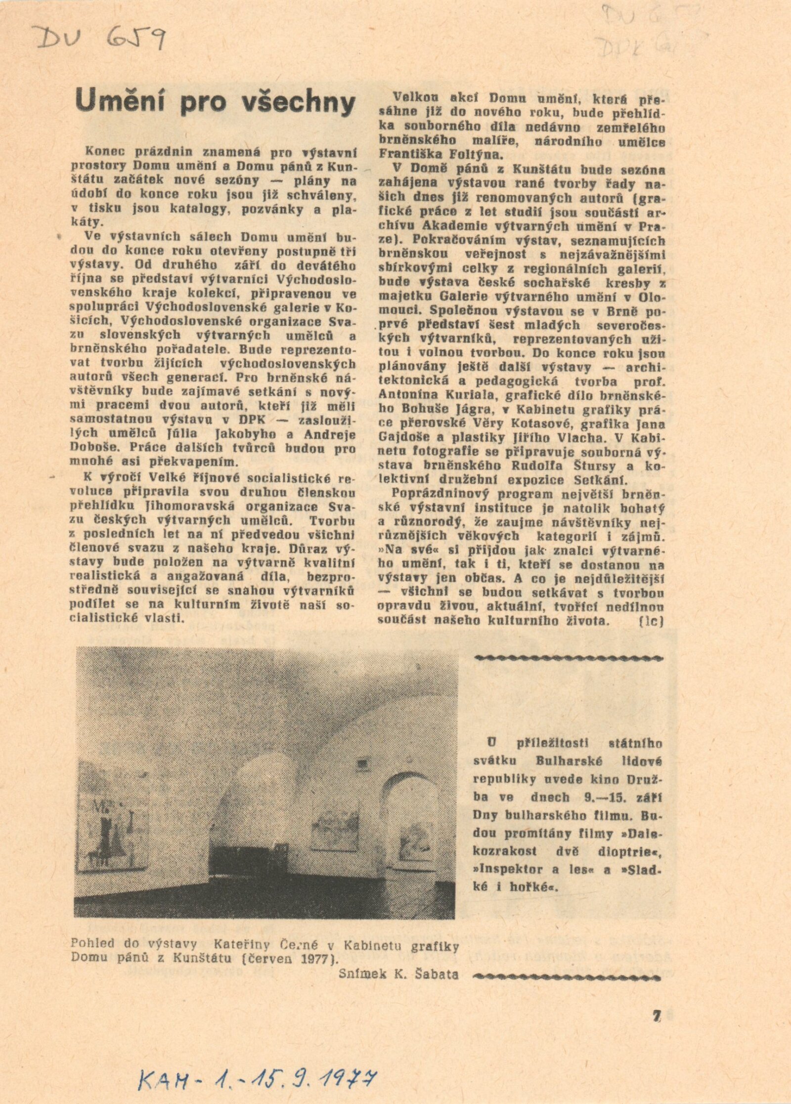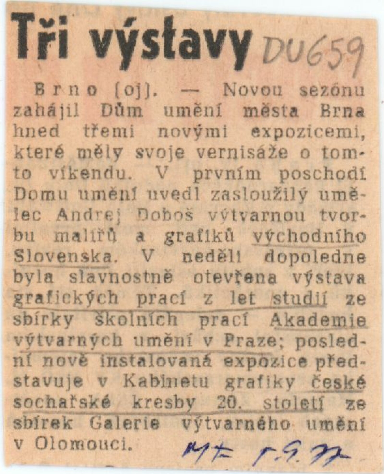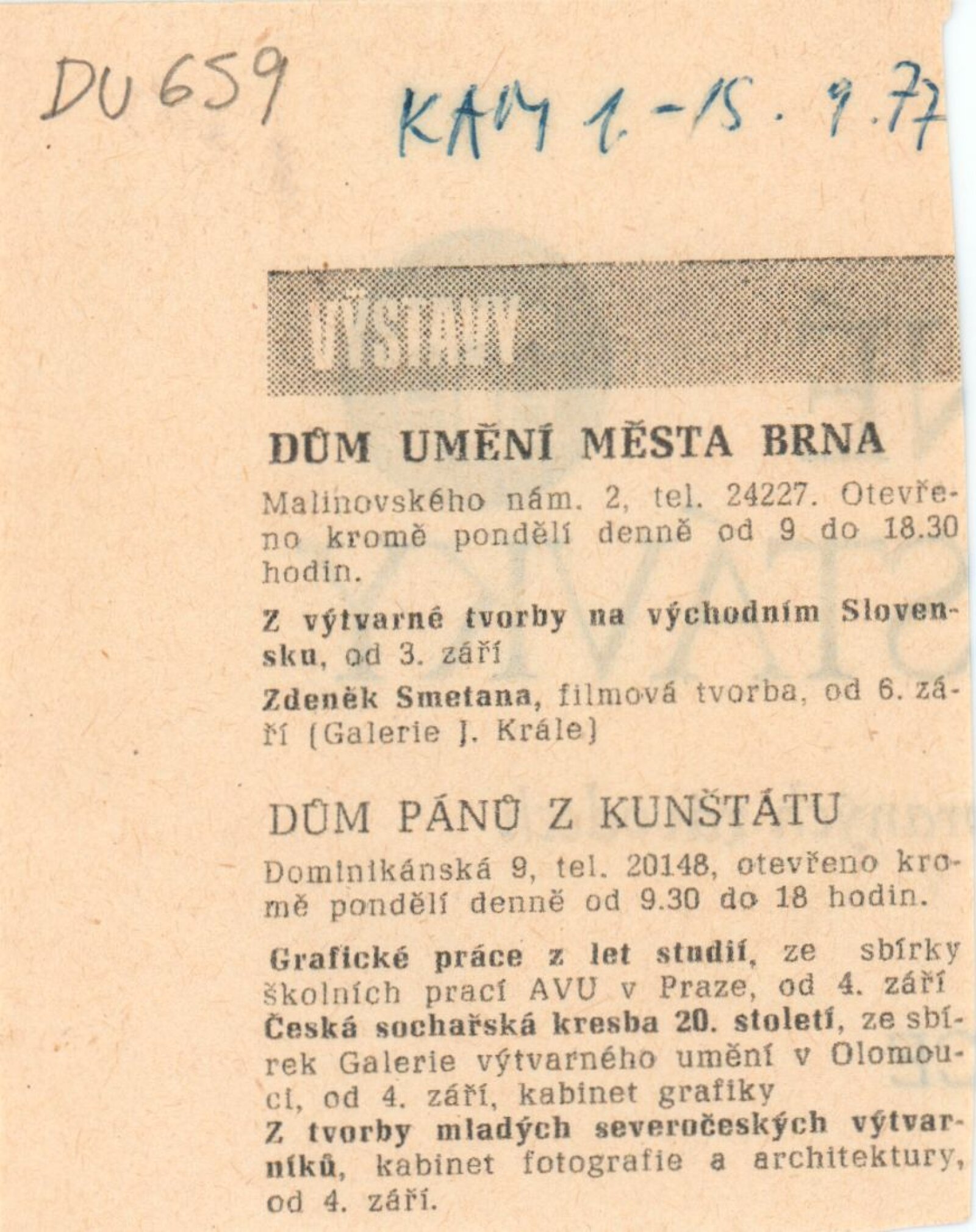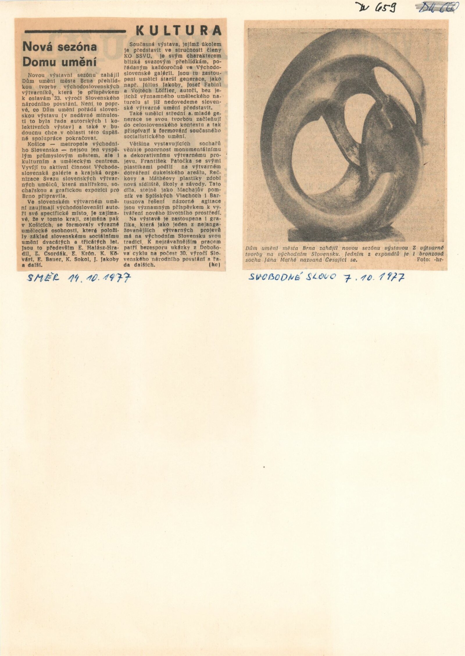 Z výtvarné tvorby na východním Slovensku. Plastika, malba, kresba, grafika: Dům umění města Brna, 2. 9. – 9. 10. 1977 / Text: Gabriela Vizdalová Haščáková. – Brno: DUmB, 1977. – 25 s., obr., DU 659. – MG