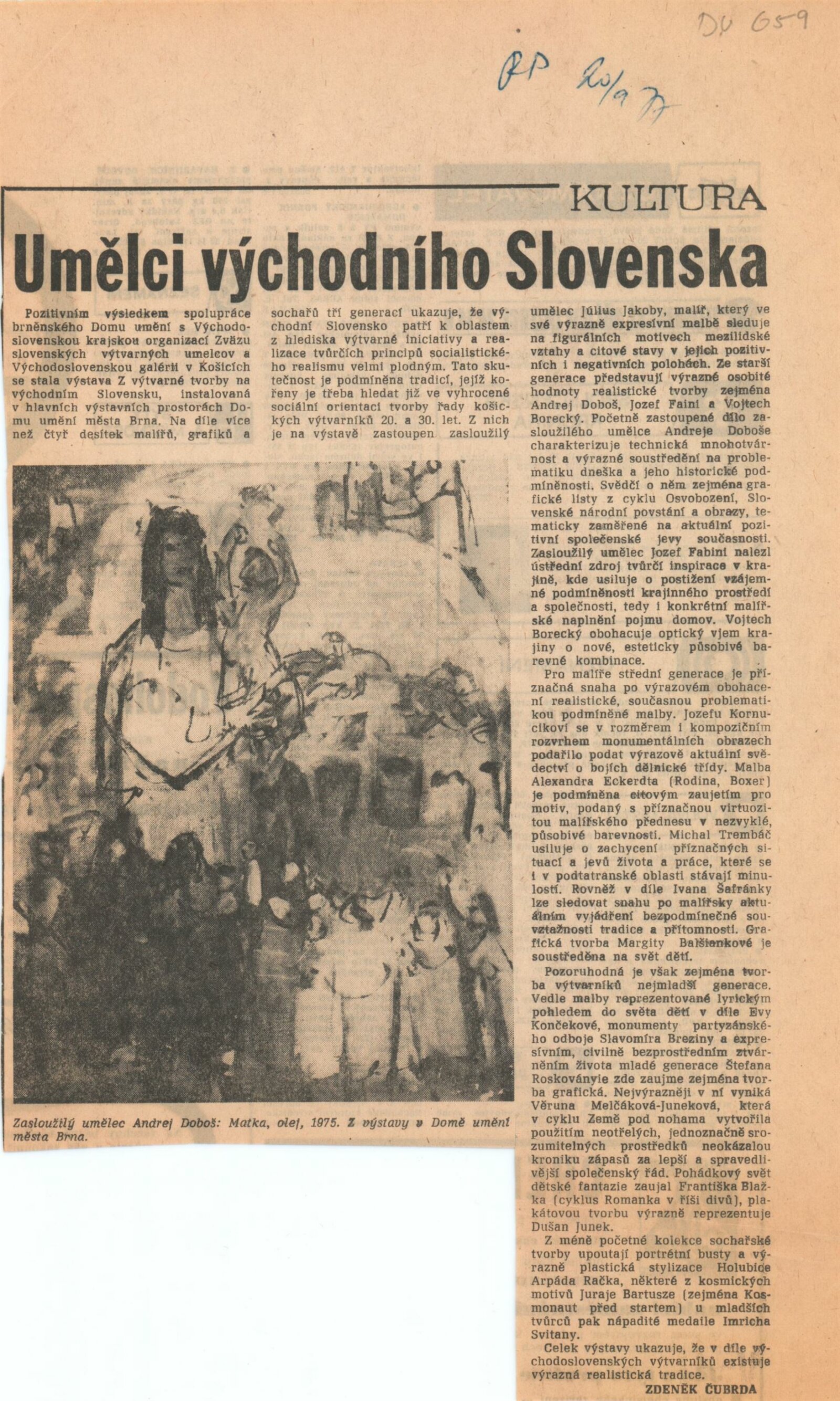 Z výtvarné tvorby na východním Slovensku – plastika, malba, kresba, grafika