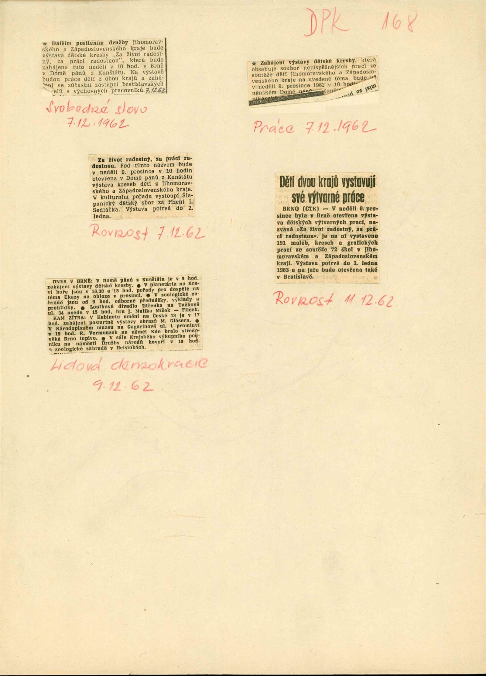 pozvánka, korespondence (žádost o uspořádání výstavy od Ústavu pro další vzdělávání učitelů a výchovných pracovníků), recenze v tisku