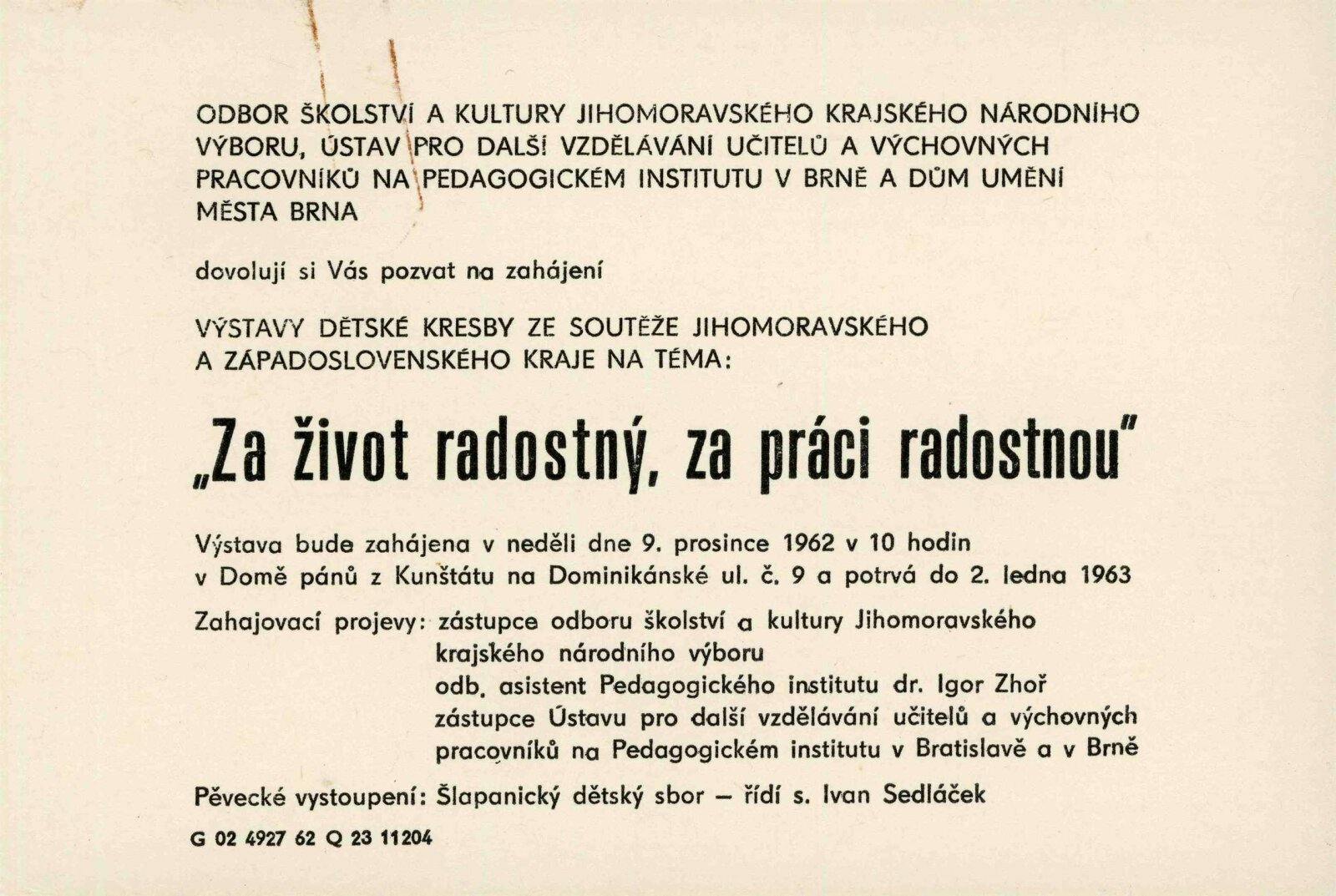Za život radostný, za práci radostnou (výstava dětských prací)