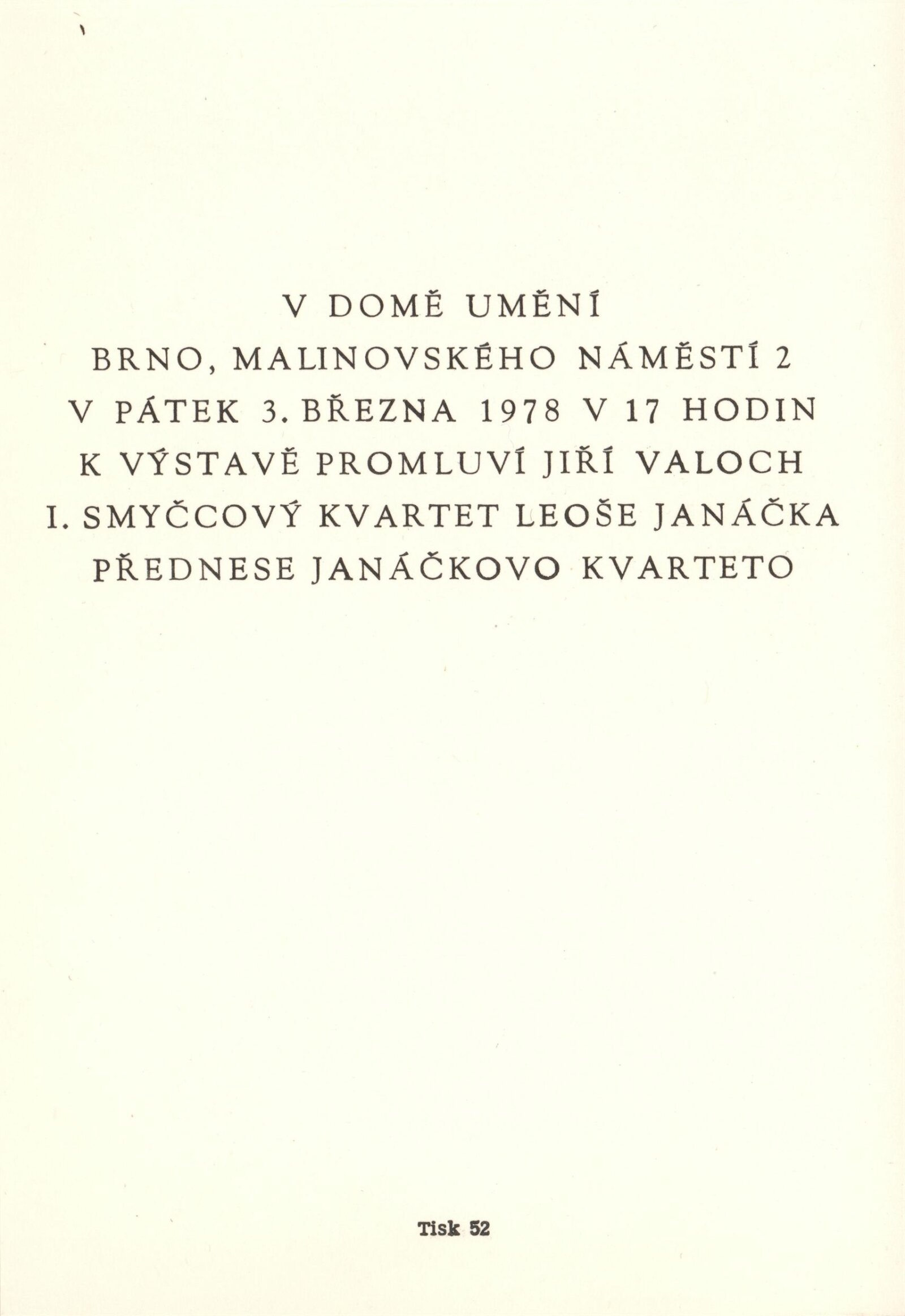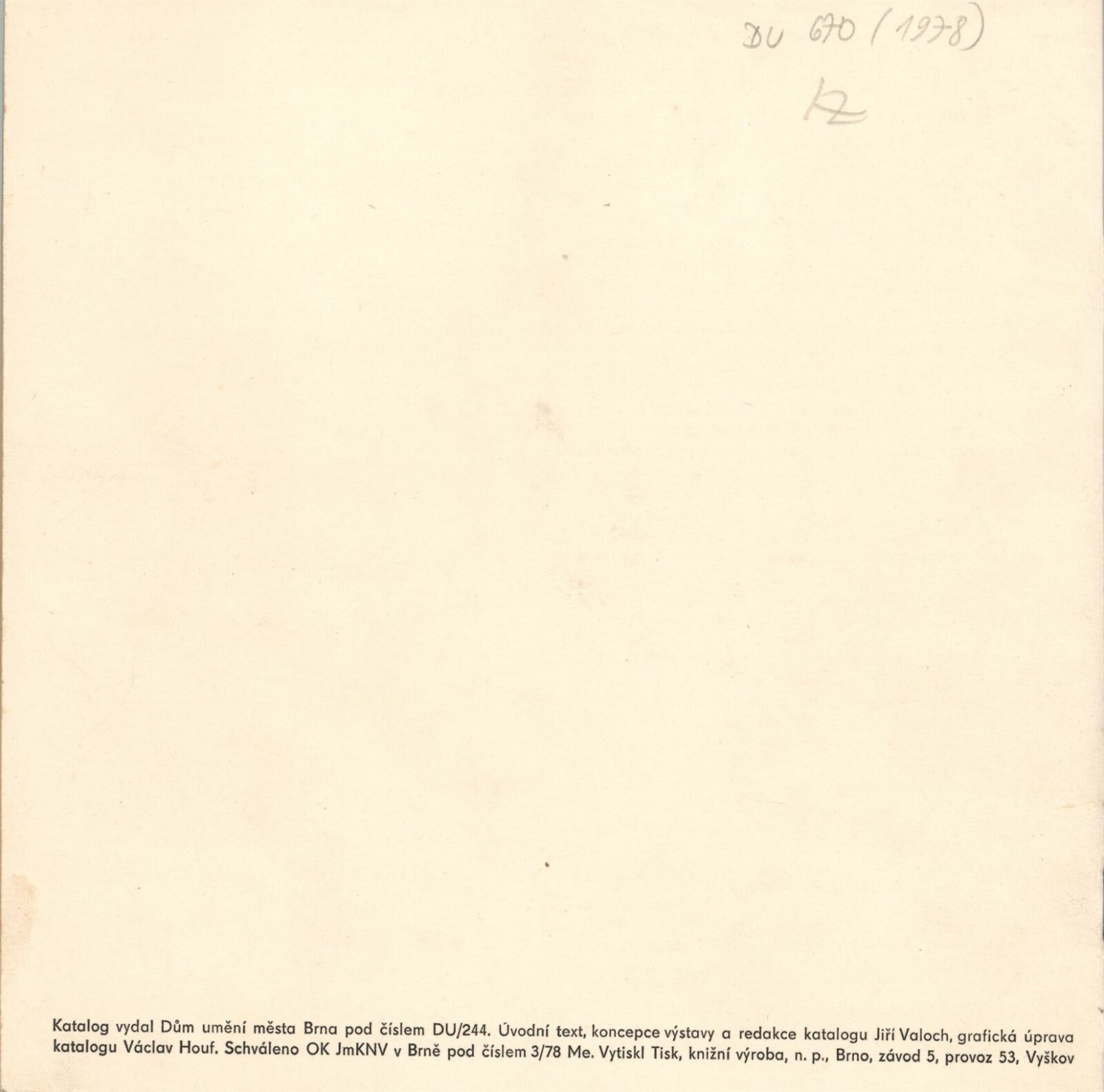 pozvánka, pozvánka výstavy Nové město na Moravě 1978, katalog, katalog výstavy Praha, seznam vystavených děl, plakát, podklady pro katalog, provozní korespondence, reversy, žádost o povolení výstavy, recenze v tisku