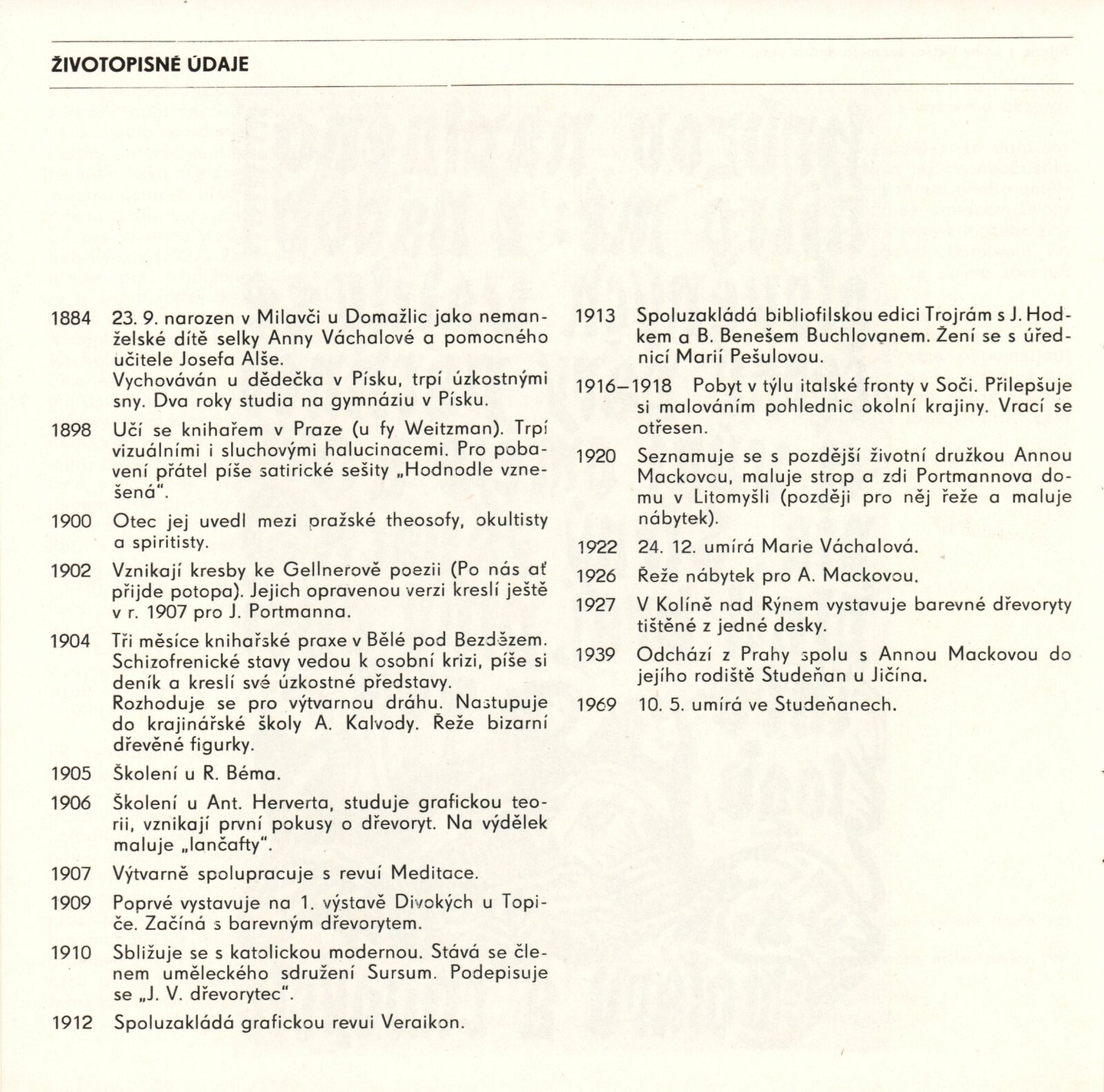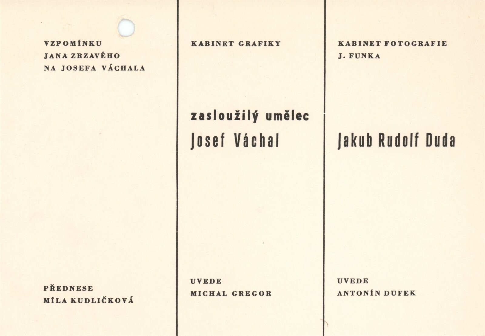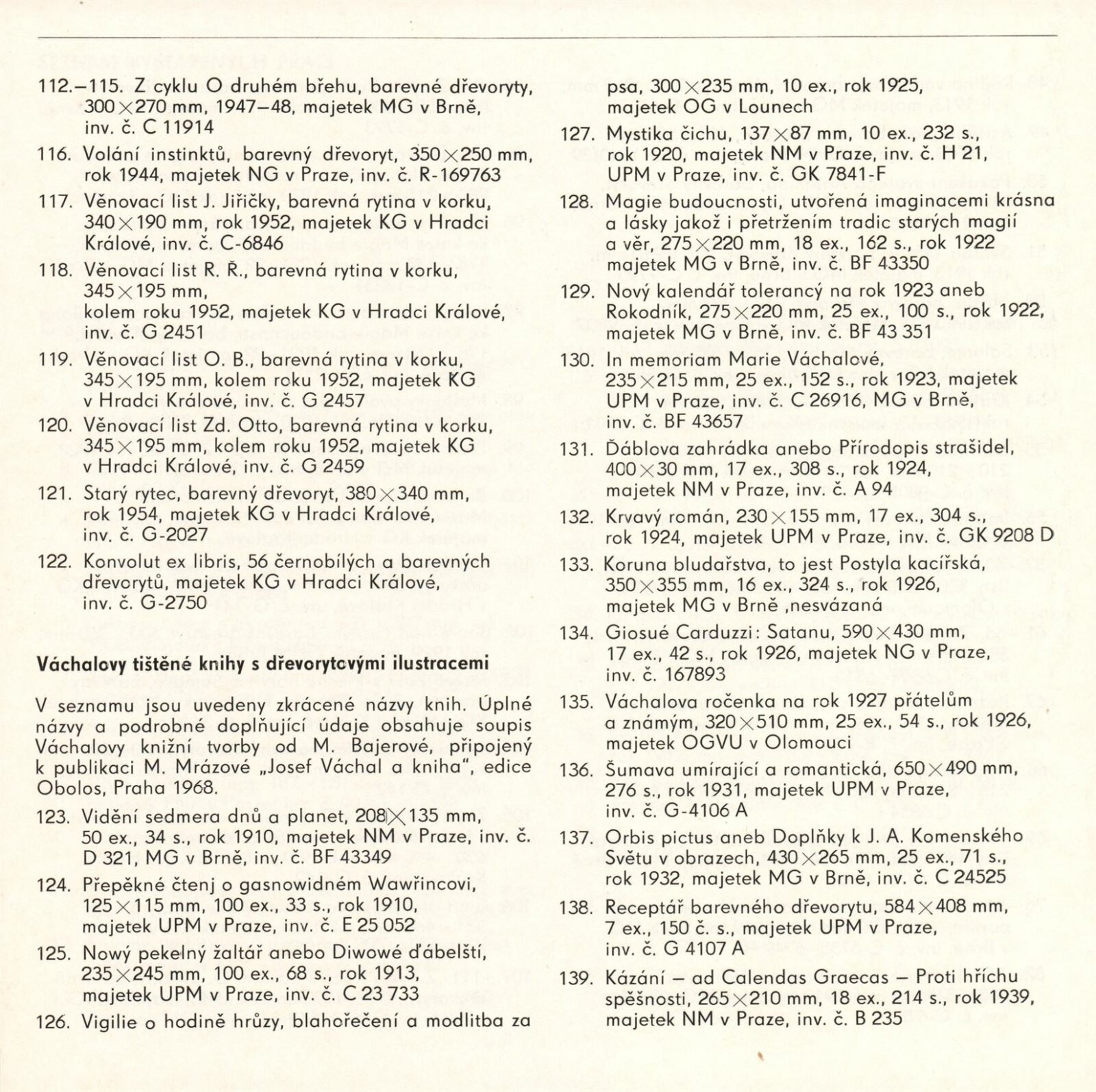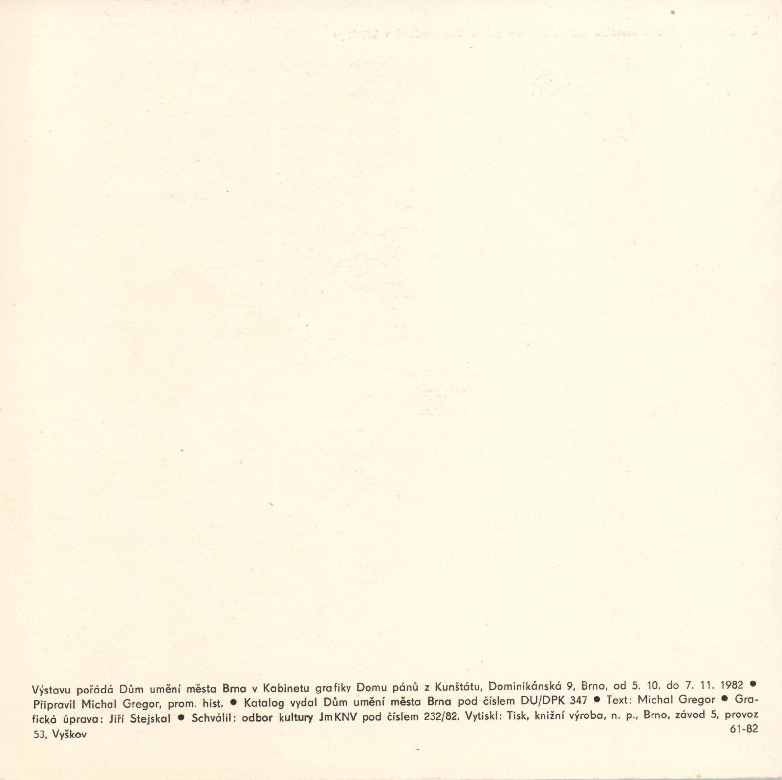 Zasloužilý umělec Josef Váchal. Volná a knižní grafika: Dům umění / Dům pánů z Kunštátu, Kabinet grafiky, 5. 10. – 7. 11. 1982 / Text: Michal Gregor. – Brno: DUmB, 1982. – 20 s., obr., životní data, výstavy, ceny a uznání, DPK 782. – MZK; MG; MMB