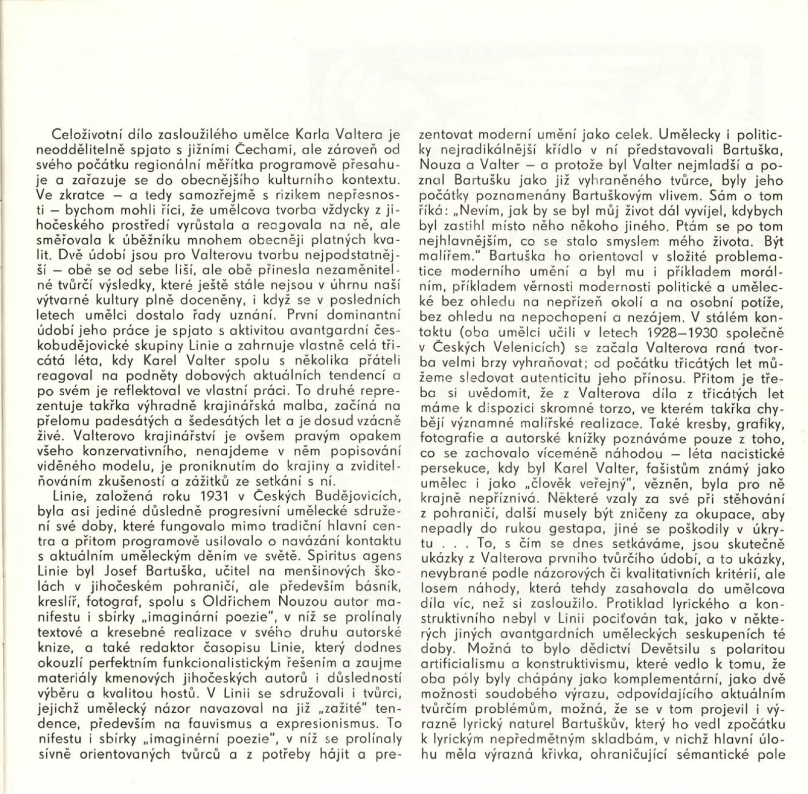 pozvánka, katalog, strojopis, fotografie ke katalogu a výstavy, seznam vystavených děl, provozní korespondence, smlouva o výpůjčce, žádost o povolení výstavy, recenze v tisku, katalog k výstavě Karla Valtera z roku 1984