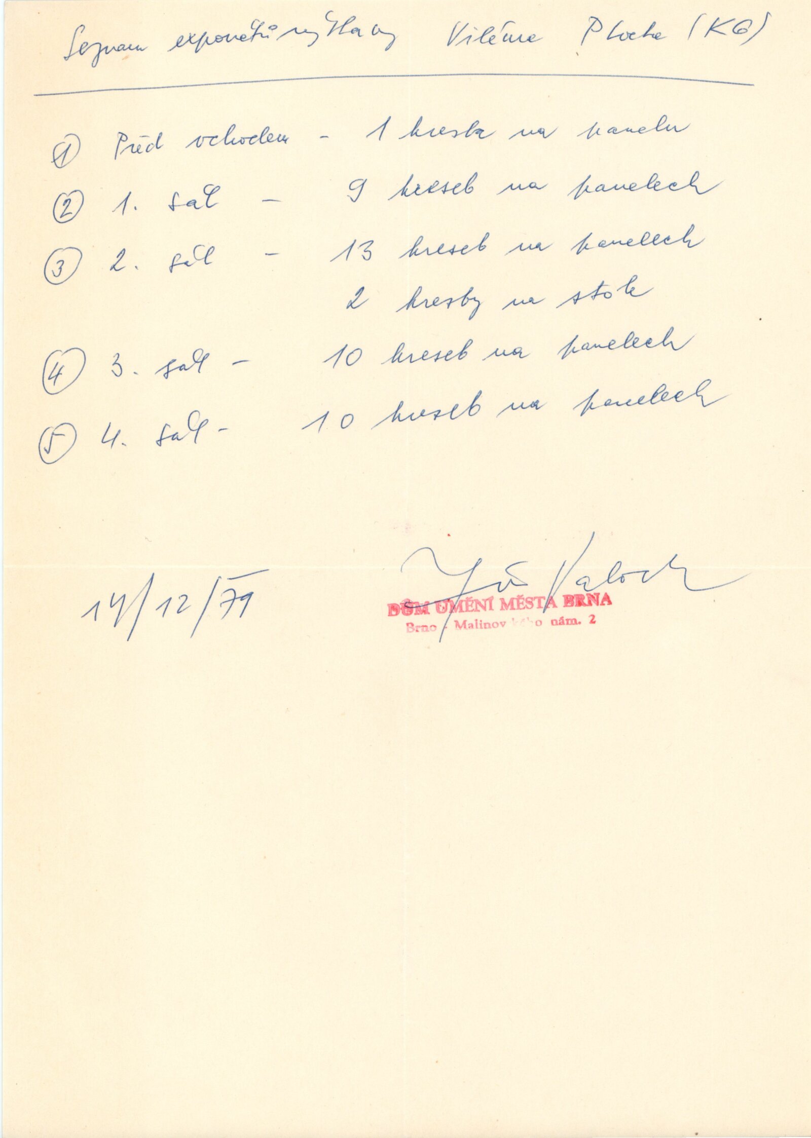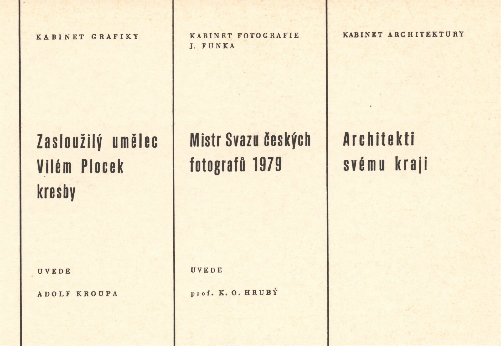 Zasloužilý umělec Vilém Plocek. Kresby: Kabinet grafiky, 183. výstava, Dům pánů z Kunštátu 14. 12. 1979 – 13. 1. 1980 / Text Jiří Valoch.- Brno: DUmB, 1979 - 9 s., obr. Životní data výstavy DPK 724; MG; MMB