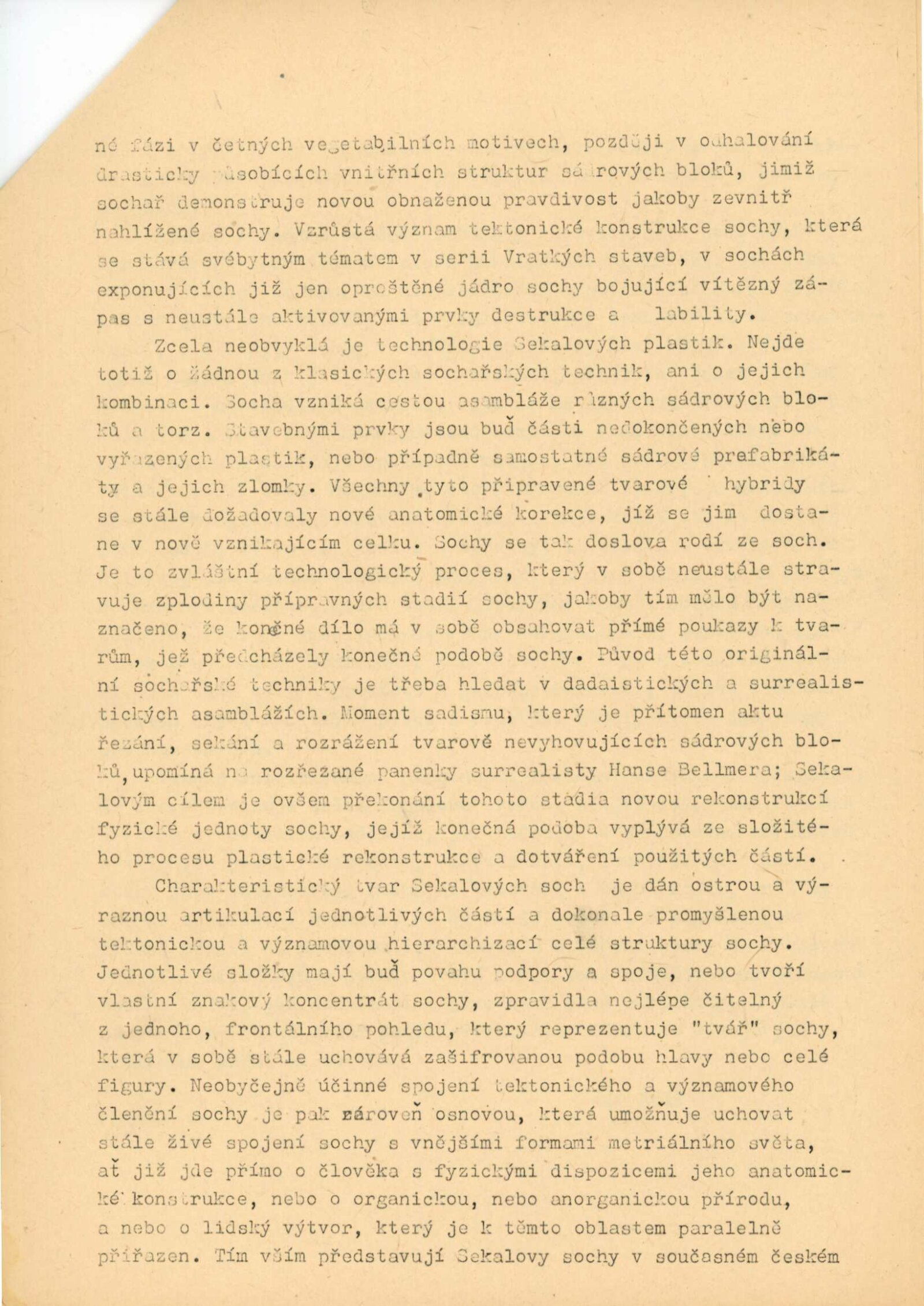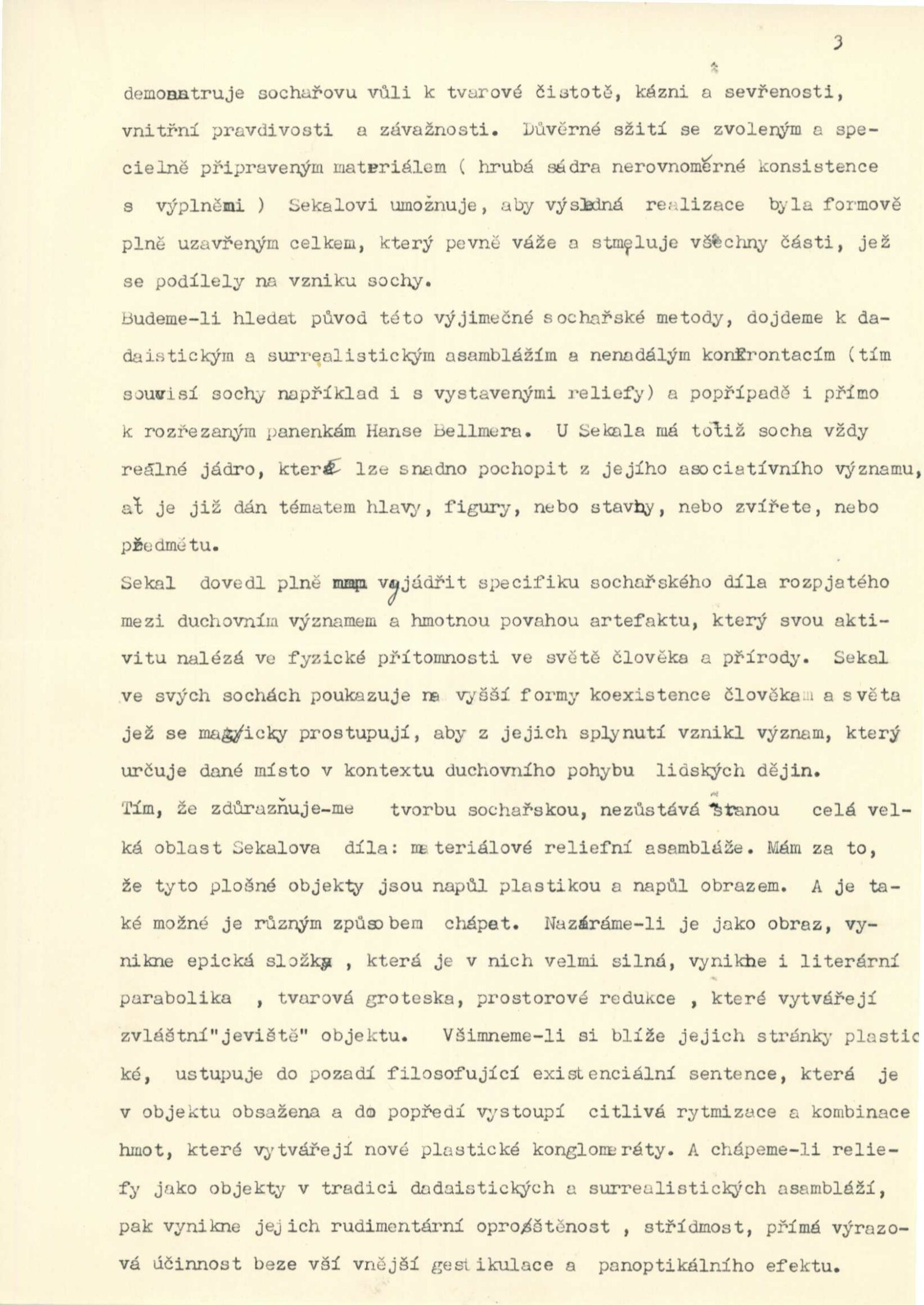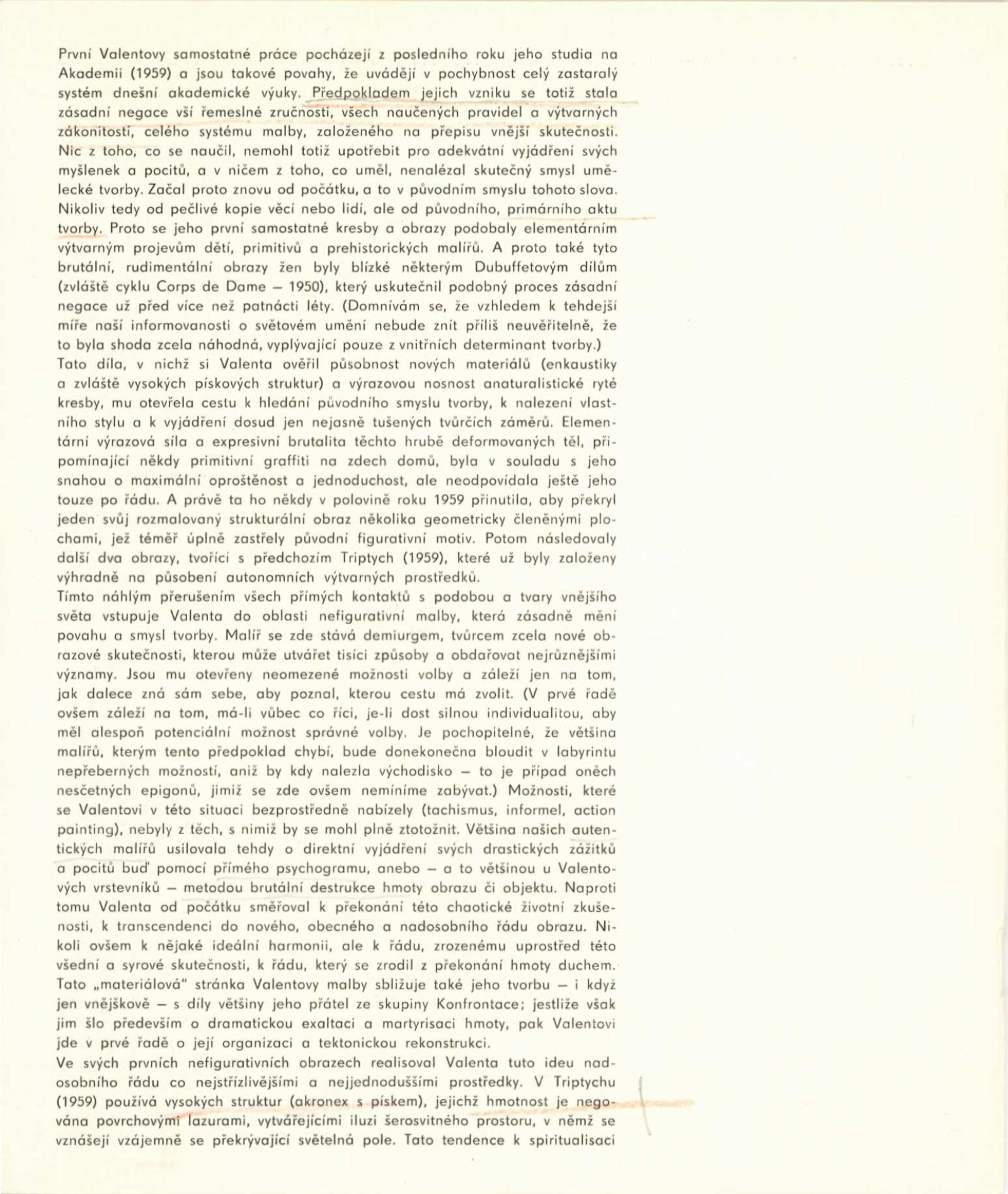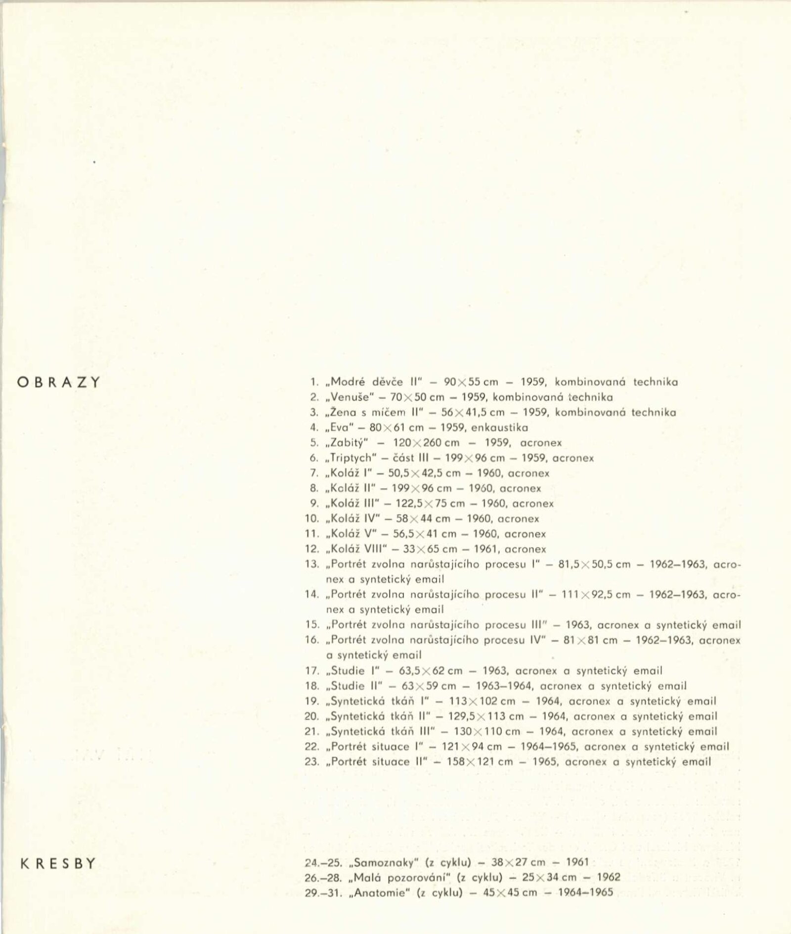 pozvánka, strojopis katalogu (Zbyněk Sekal a Jiří Valenta), strojopis zahájení výstavy (Jan Kříž), tištěný text o (ZS – Jan Kříž), podklady ke katalogu, seznam vystavených děl, pojistné seznamy, smlouva k výstavě, korespondence (příprava výstavy, Zbyněk Sekal, Jan Kříž s DU), recenze v tisku, katalogy umělců