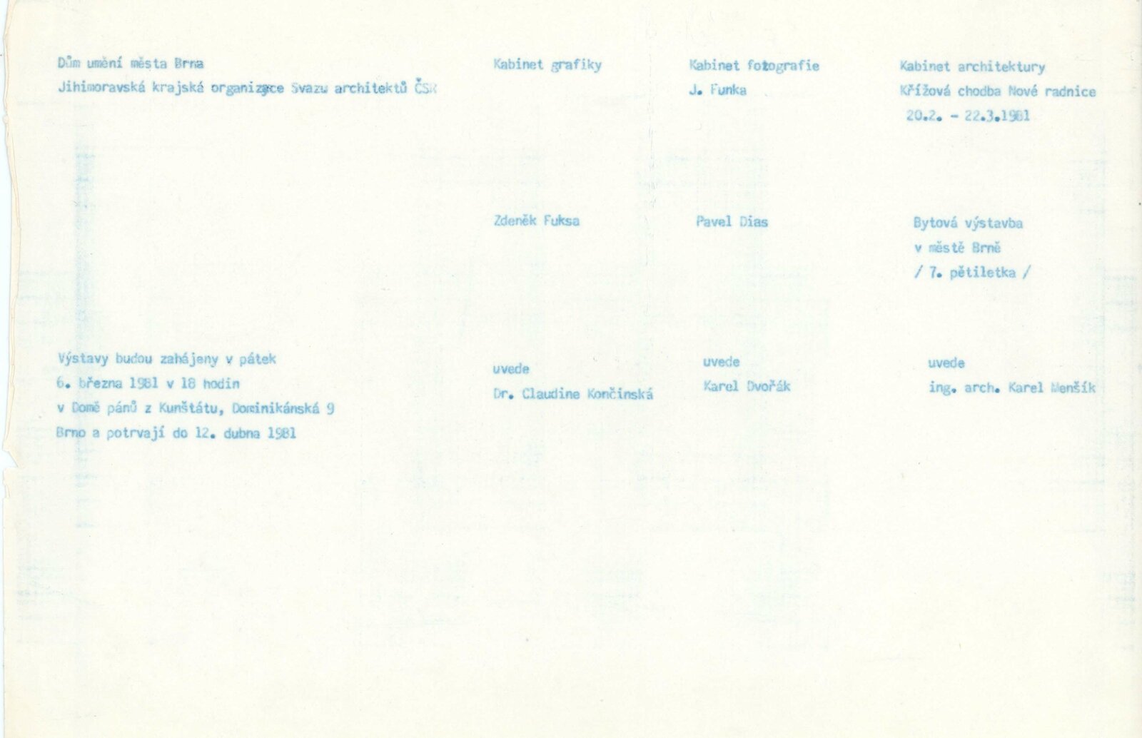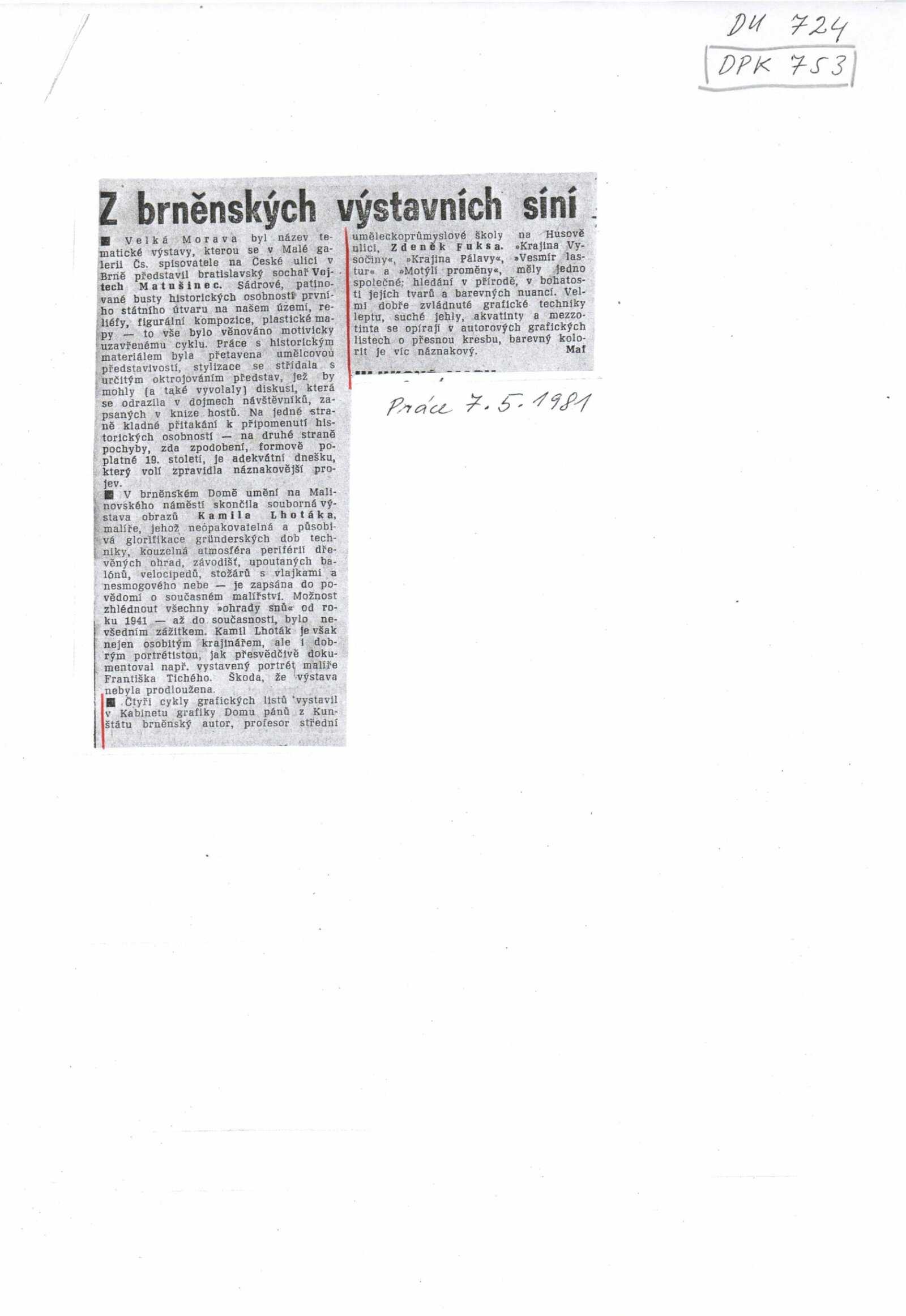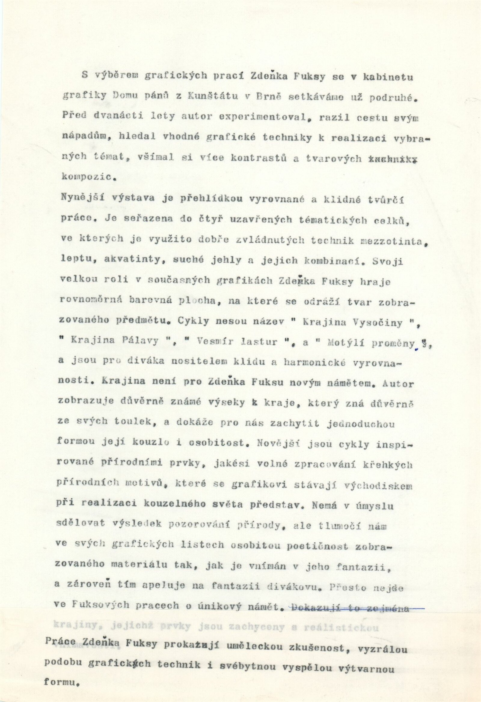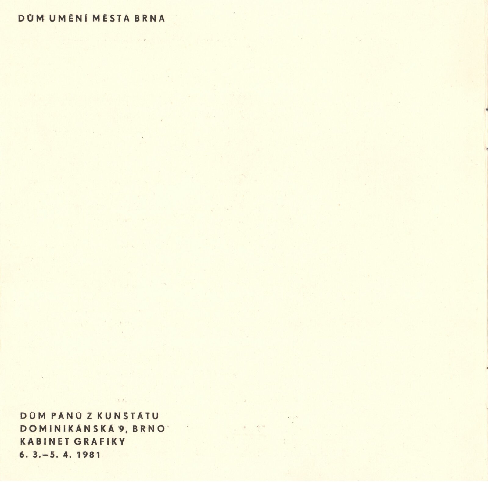 Zdeněk Fuksa. Grafika: Dům umění / Dům pánů z Kunštátu, Kabinet grafiky, 6. 3. – 5. 4. 1981 / Text: Claudine Končinská. – Brno: DUmB, 1981. – 9 s., obr., životní data, výstavy, DPK 753. – MZK; MG
