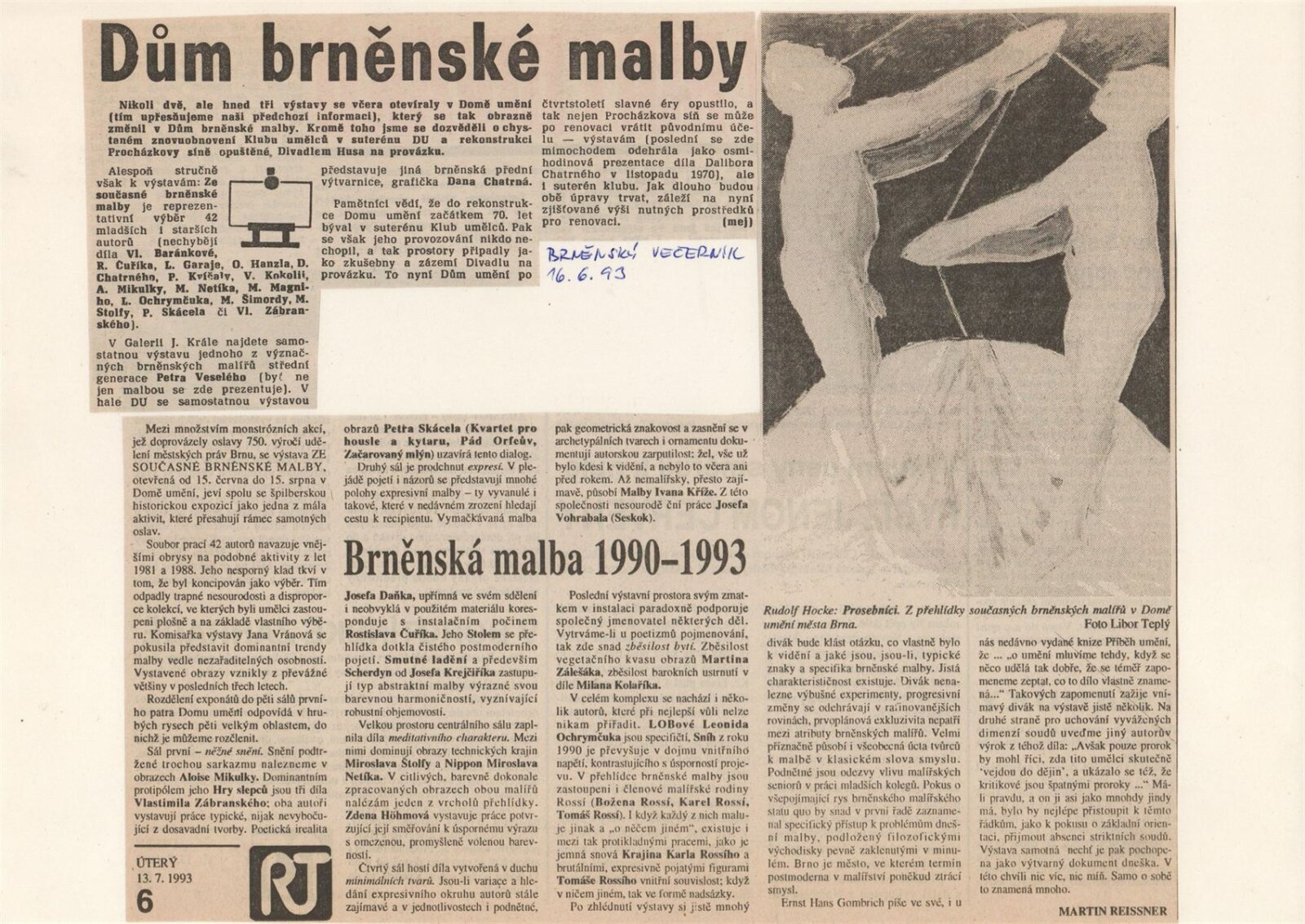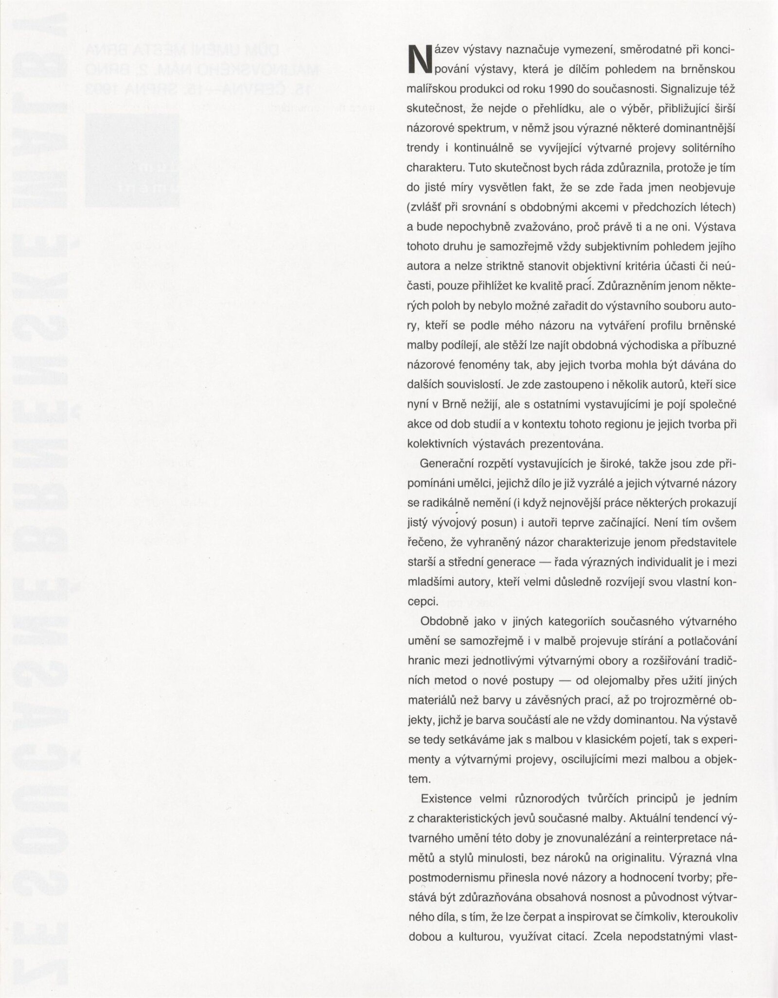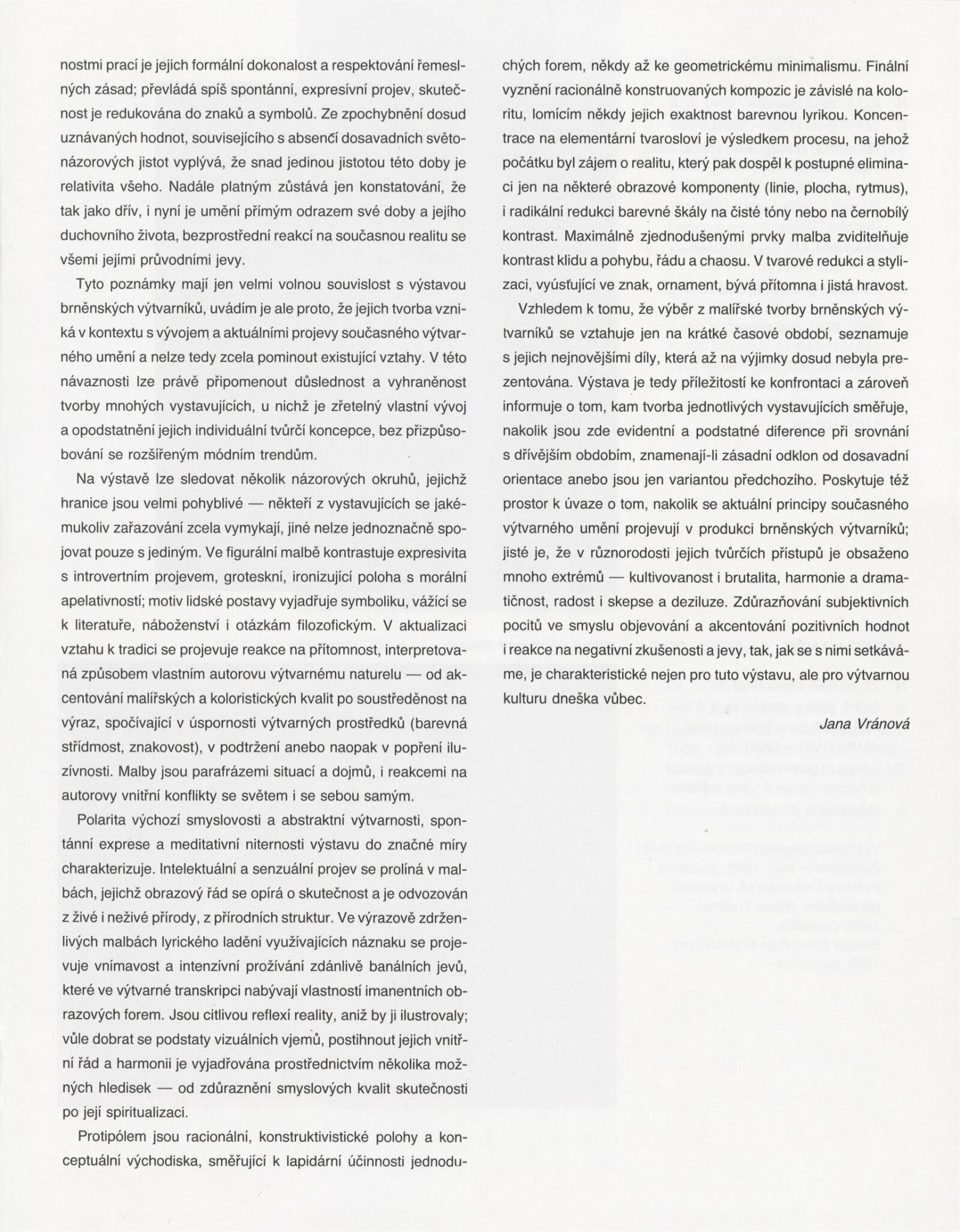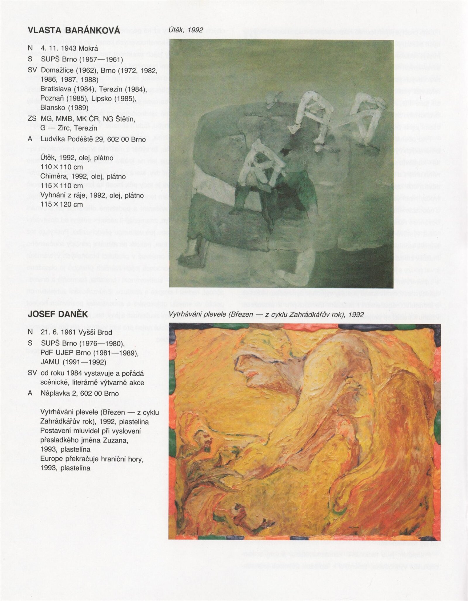 Ze současné brněnské malby: Dům umění města Brna 15. 6. – 15. 8. 1993 / Text Jana Vránová. - Brno: DUmB, - [24] s., obr. Životní data vystavujících DU 945; MZK