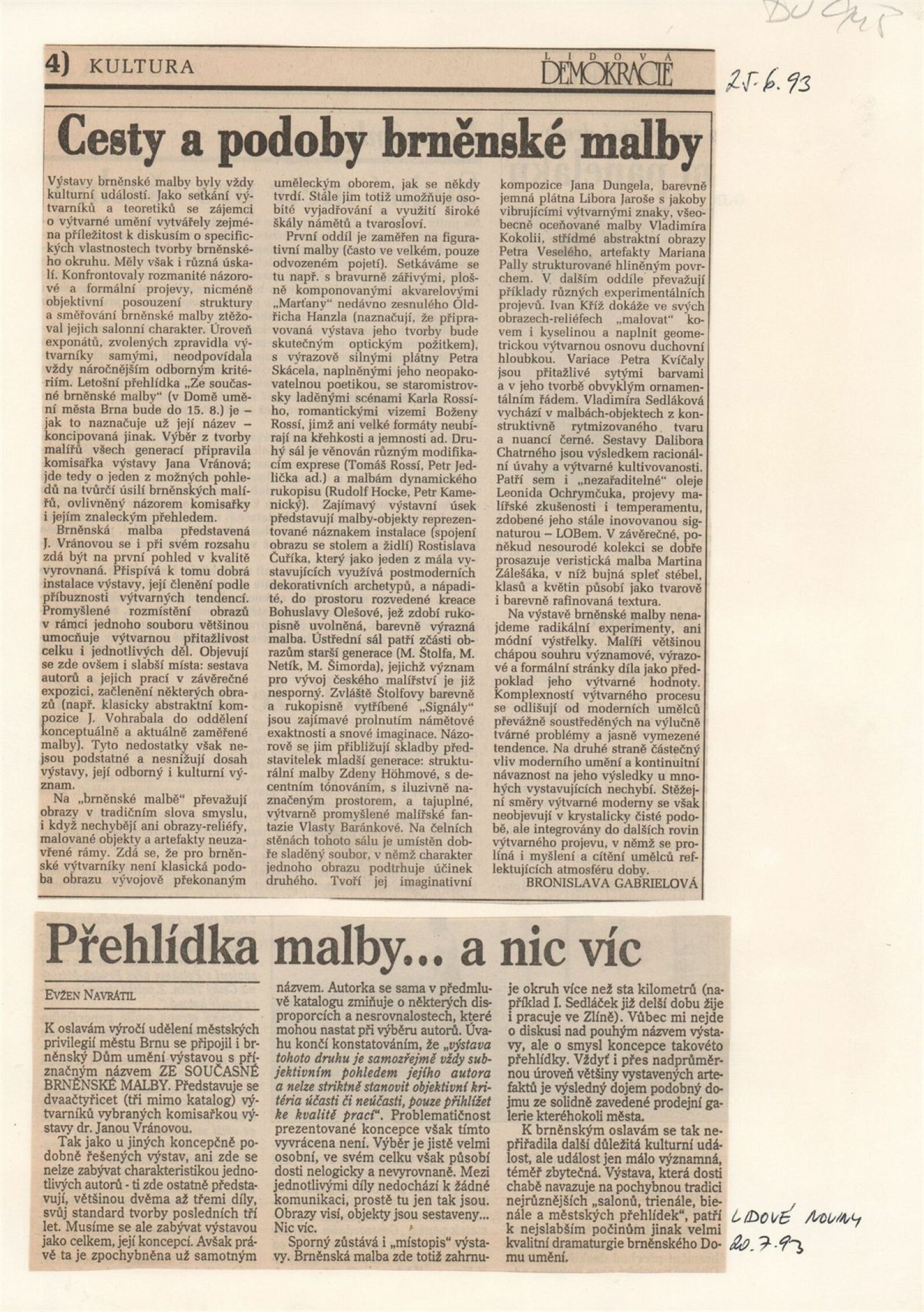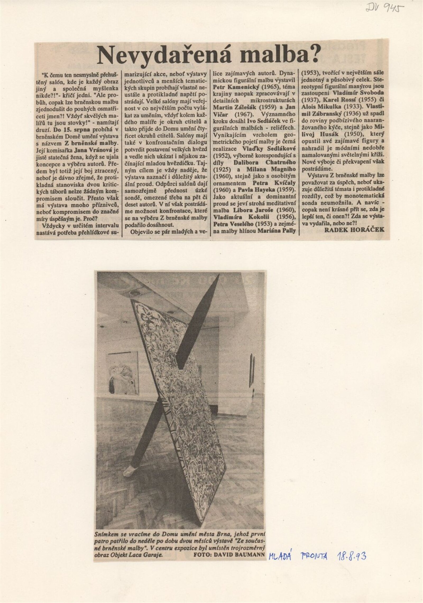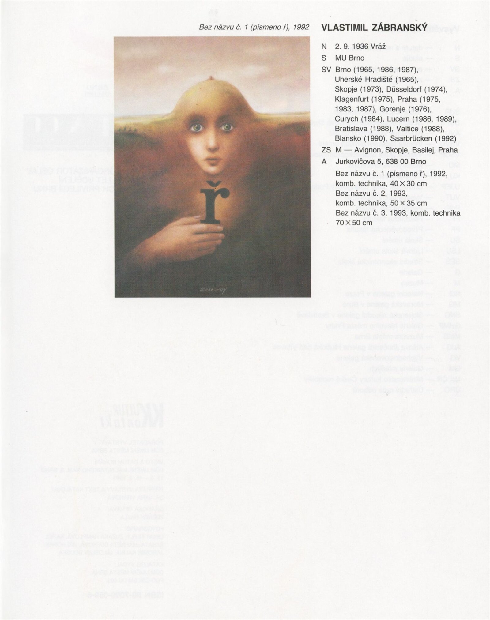 Ze současné brněnské malby: Dům umění města Brna 15. 6. – 15. 8. 1993 / Text Jana Vránová. - Brno: DUmB, - [24] s., obr. Životní data vystavujících DU 945; MZK