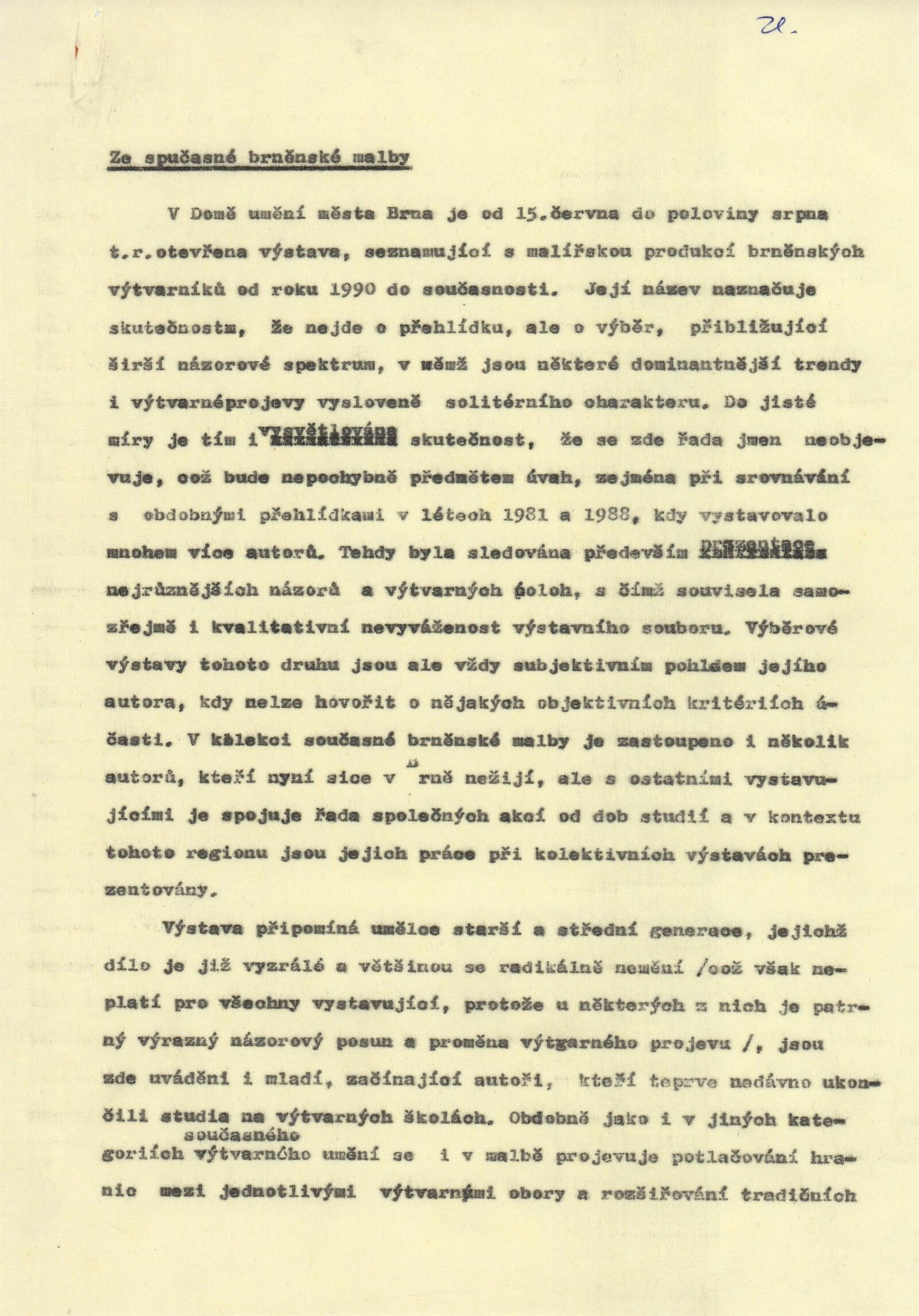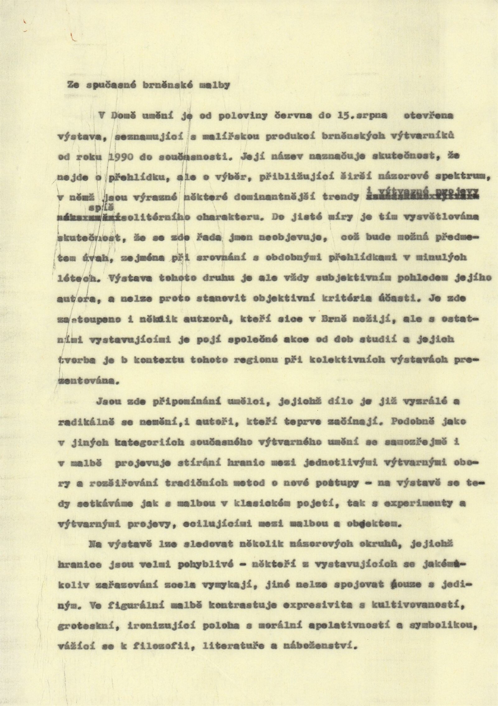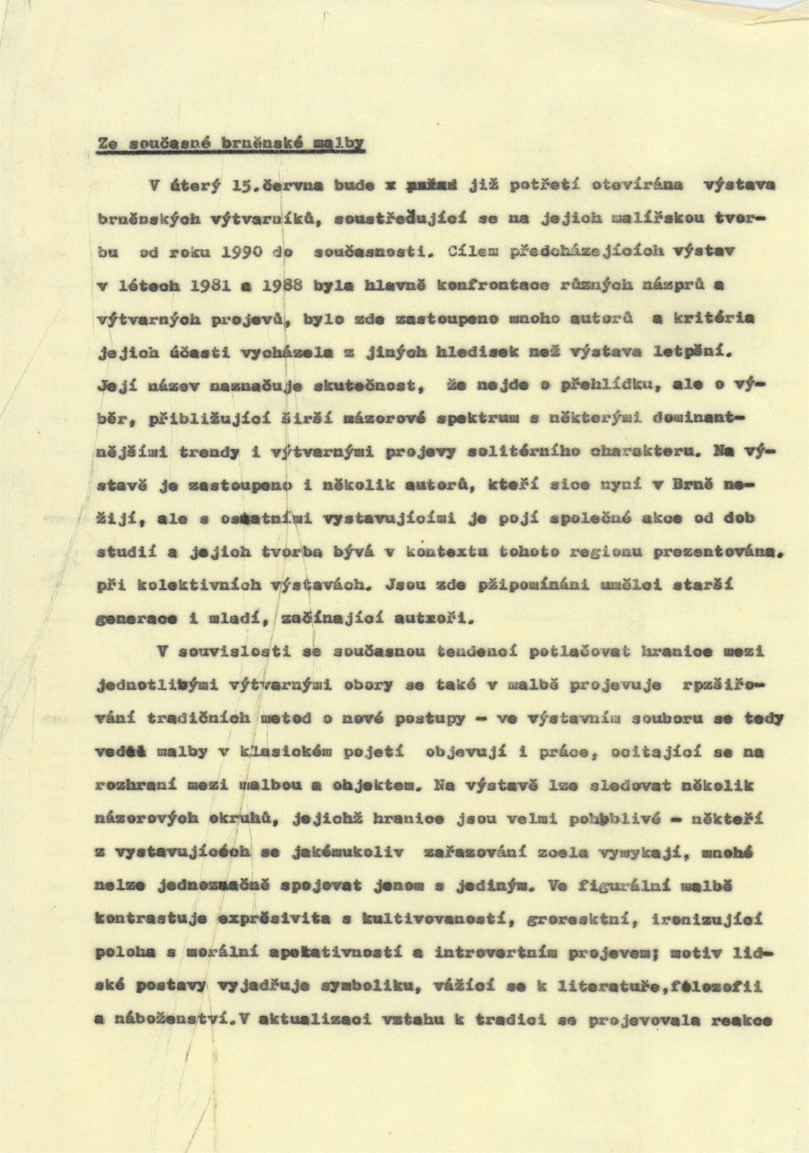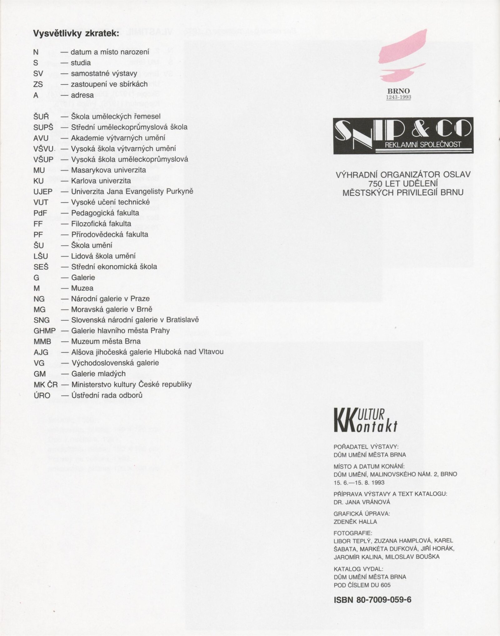 Ze současné brněnské malby: Dům umění města Brna 15. 6. – 15. 8. 1993 / Text Jana Vránová. - Brno: DUmB, - [24] s., obr. Životní data vystavujících DU 945; MZK