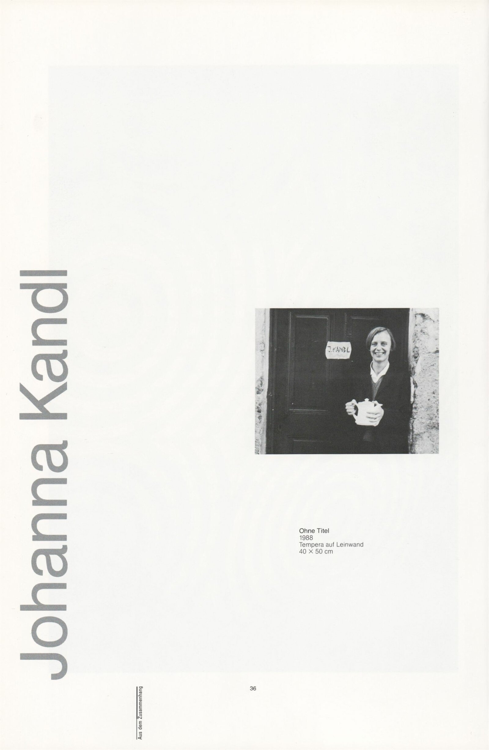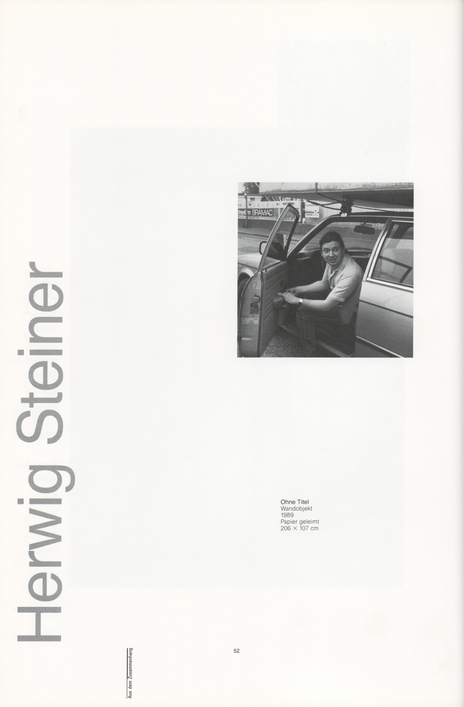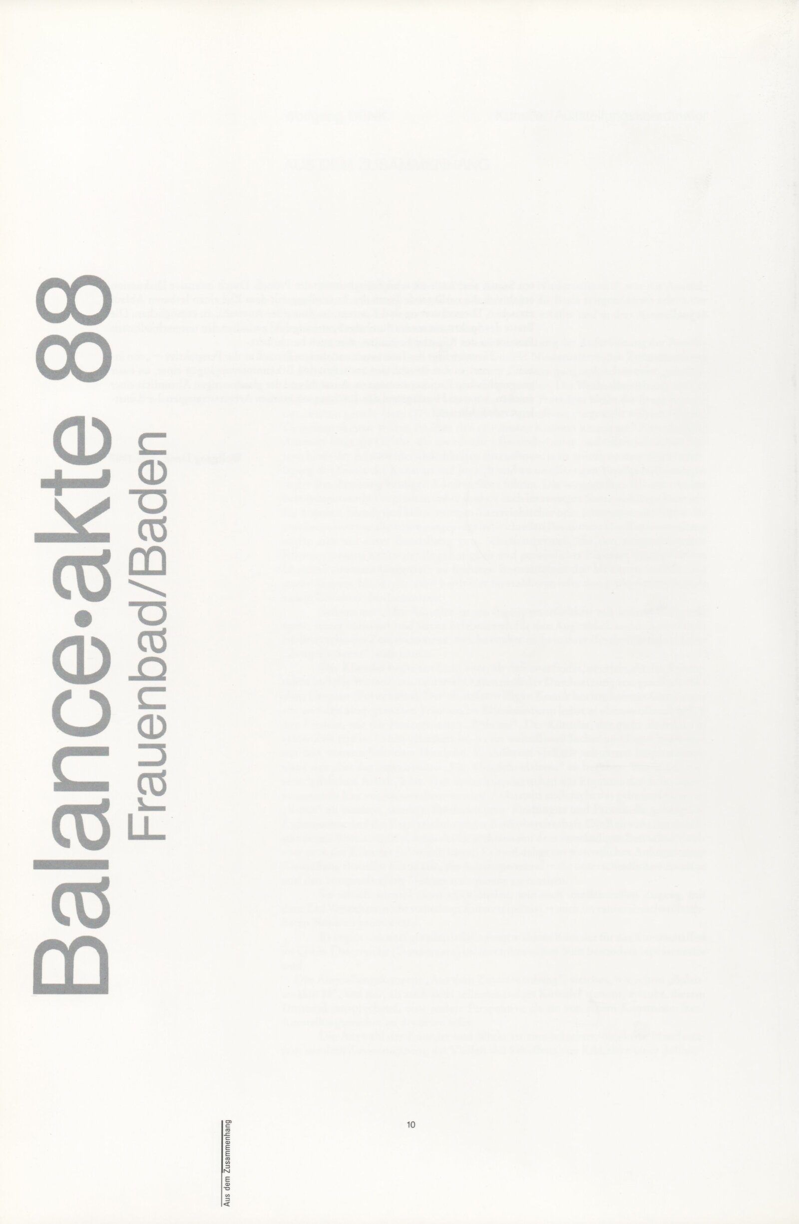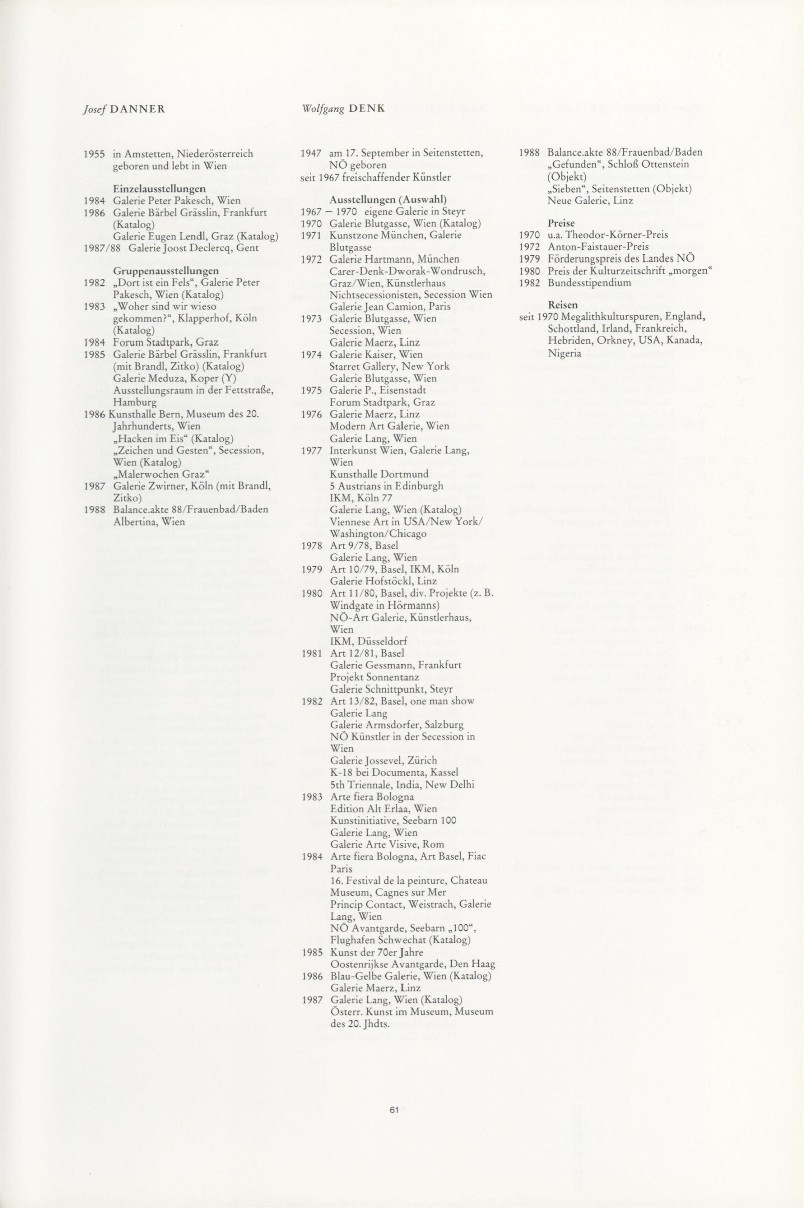 Ze souvislosti. Současné rakouské umění ze širší oblasti Dolního Rakouska: Dům umění města Brna / Dům pánů z Kunštátu, Kabinet grafiky, 1. patro, 28. 6. – 29. 7. 1990 / Společný katalog Aus dem Zusammenhang. 40 Arbeiten aktueller Kunst aus dem erweiterten Umfelt Niederösterreich Balance-akte 88. Texty Liese Prokop, Dieter Ronte, Wolfgang Denk, Peter Zawrel. – Wien, NO Landesregierung, 2.Aufl. – 80 s., obr., jako vložka český překlad textů [10] s., DPK 940. – MZK