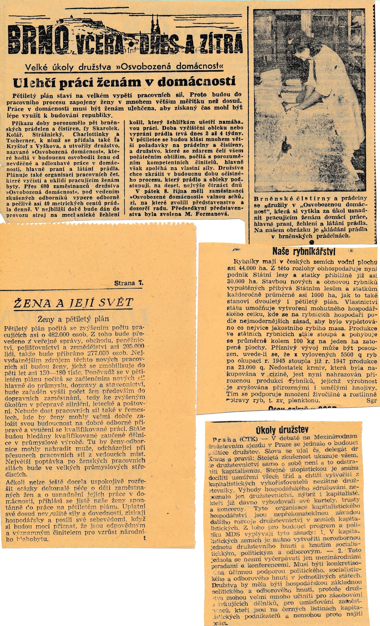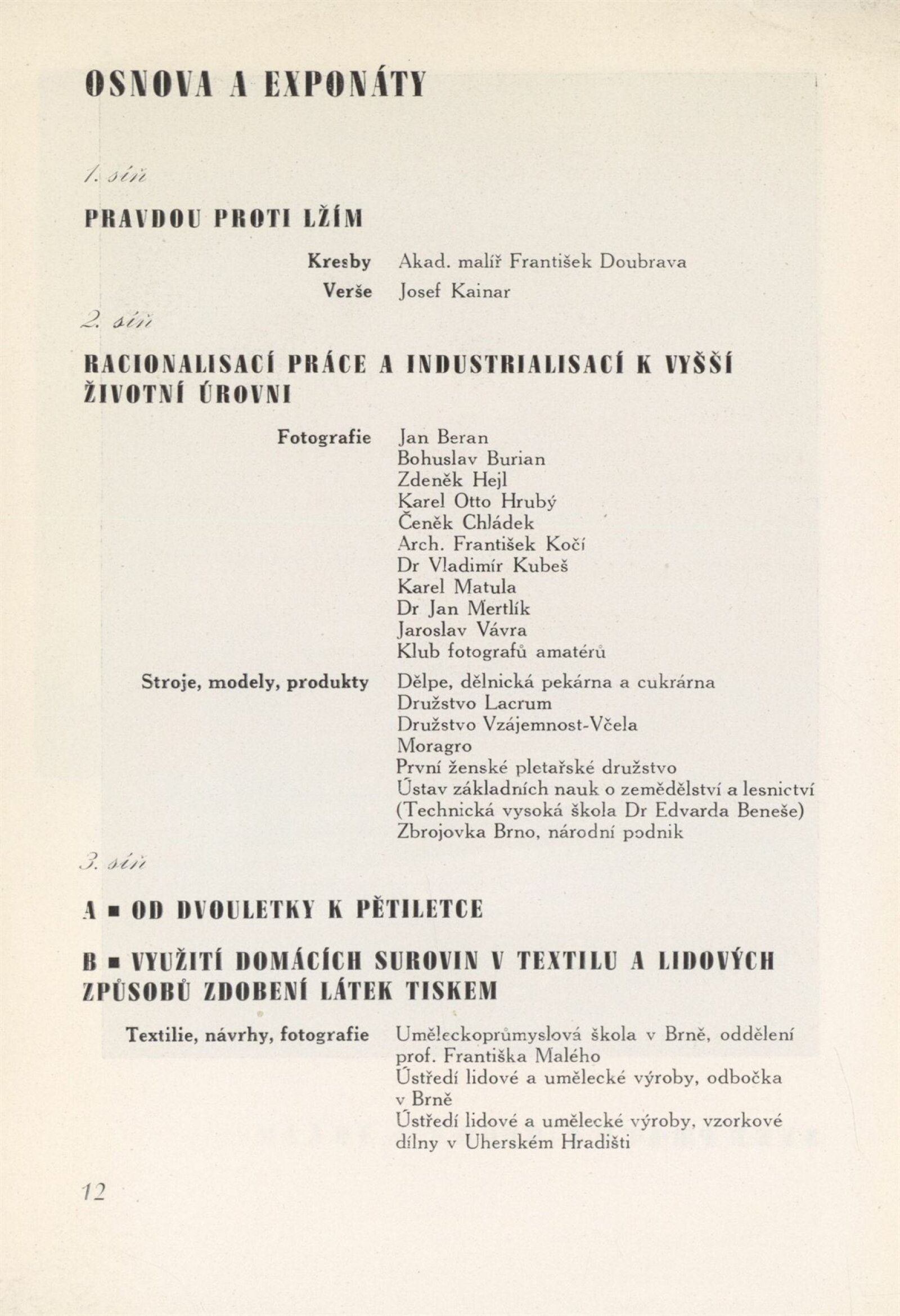 leták k výstavě, podklady k výstavě (texty k výstavě, koncepce výstavy, zúčastněné firmy a společnosti, cíl pětiletého plánu, leták), fotografie instalace výstavy, články a zprávy o výstavě, recenze v tisku
