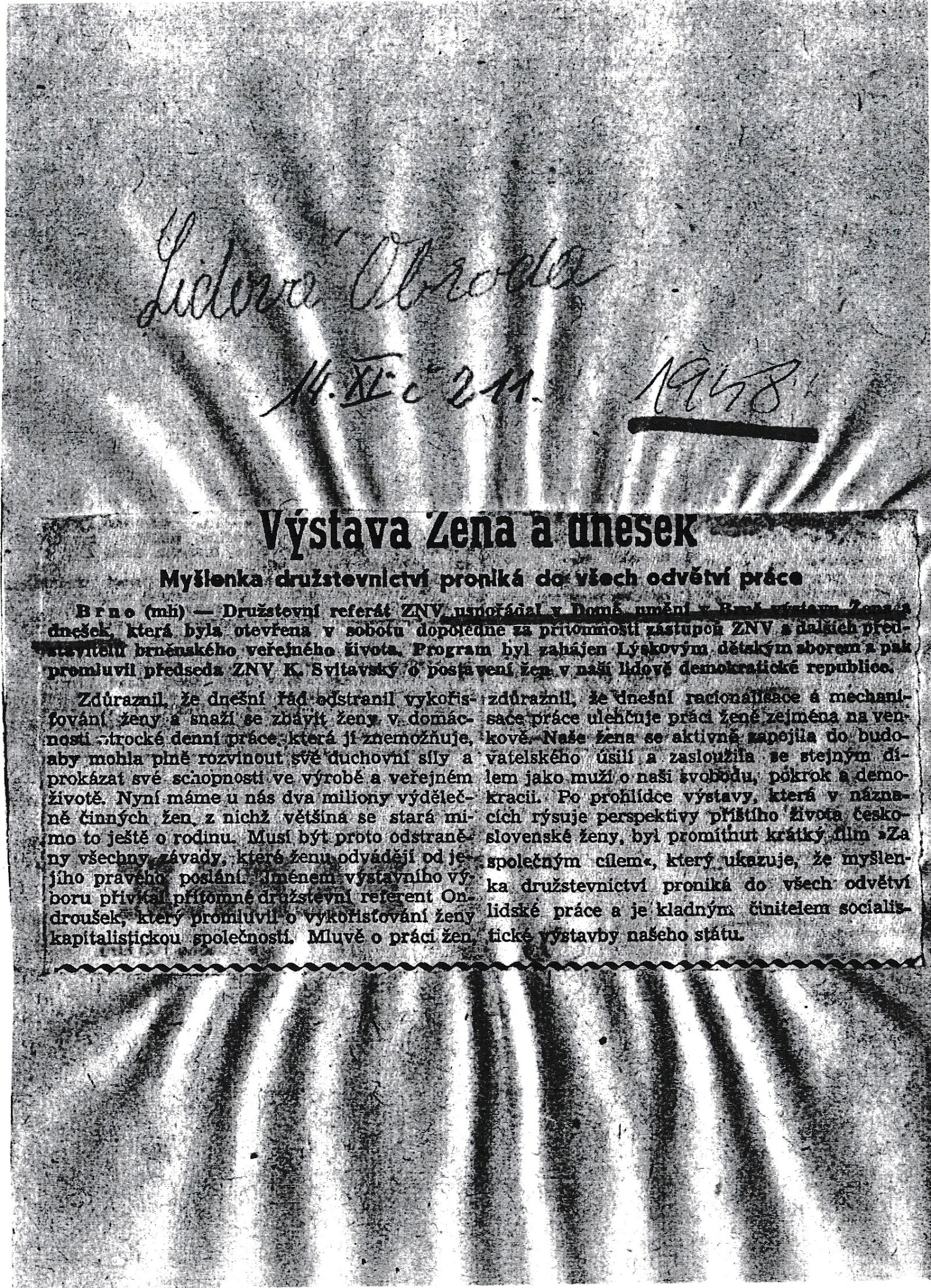 Žena a dnešek. 88. výstava (výstavní list): Dům umění, 13. 11. – 28. 11. 1948 / Texty: Jaroslav Ondroušek, František Venera. – Brno: Zemský národní výbor, 1948. – 20 s., obr., DU 89. – Kubíček 7646; MZK; MG; AMB; MMB