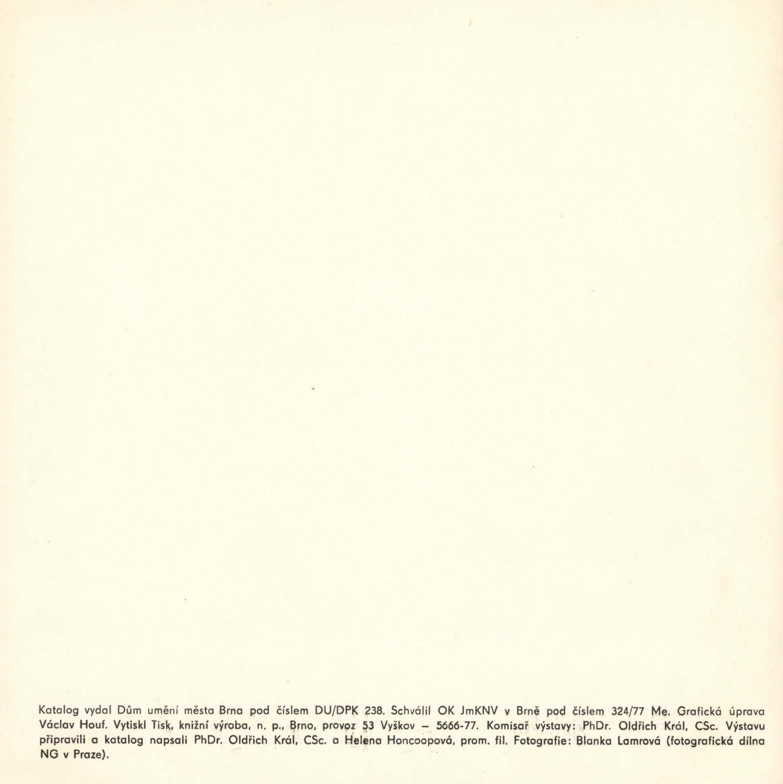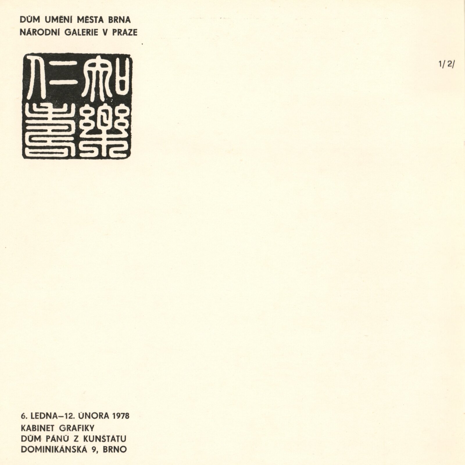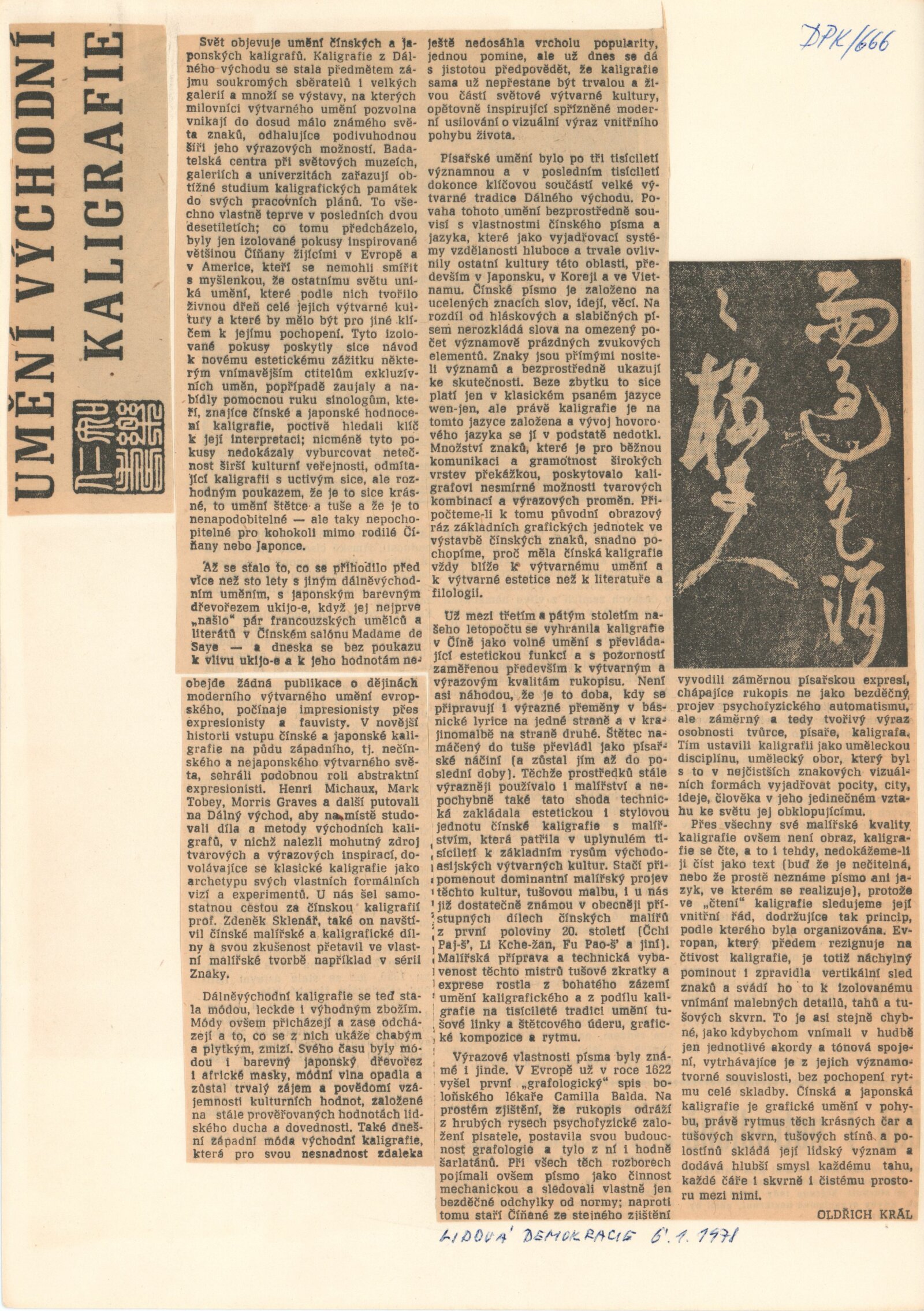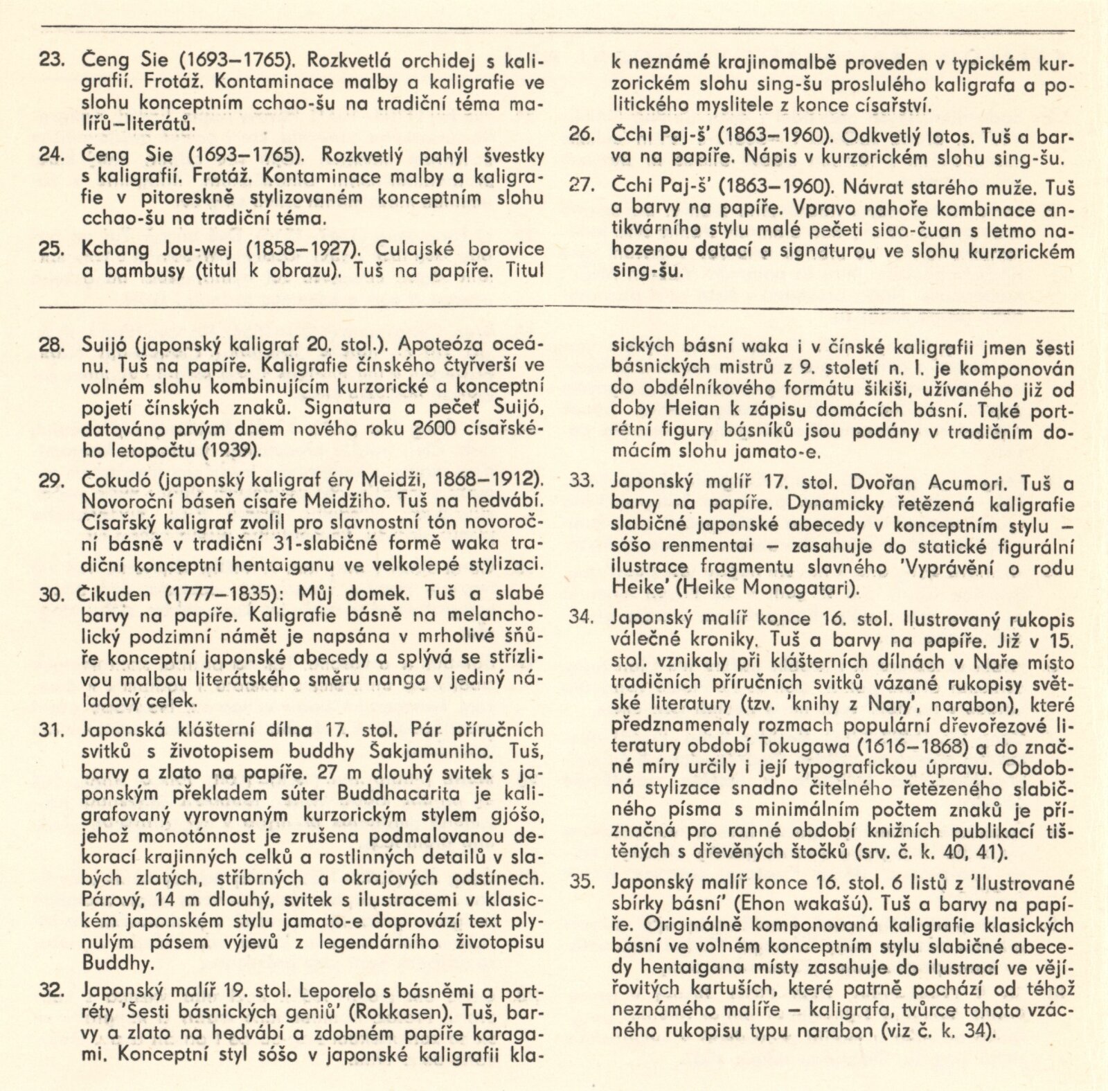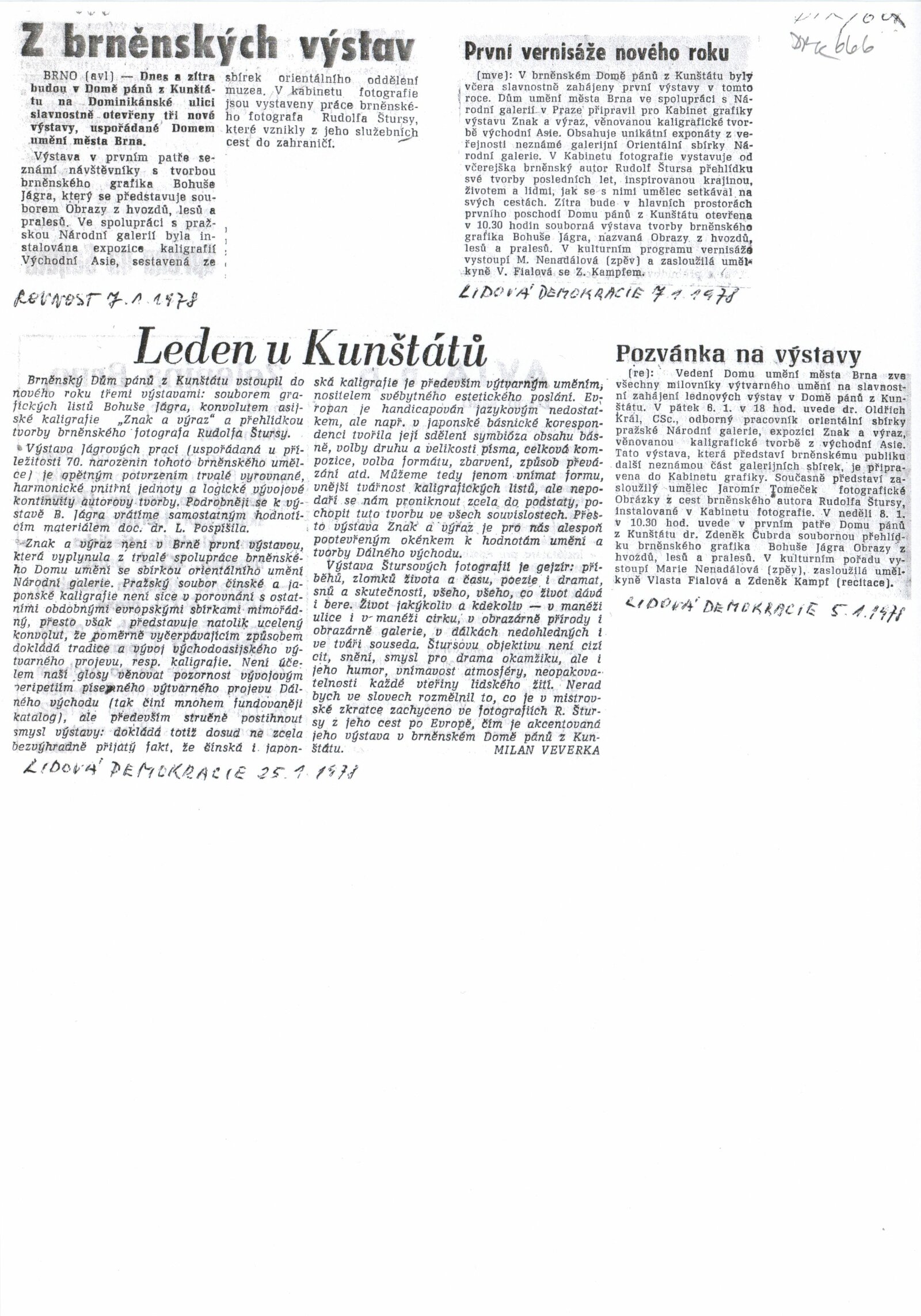 Znak a výraz. Kaligrafie Dálného východu: Kabinet grafiky, 168. výstava, Dům pánů z Kunštátu 6. 1. – 12. 2. 1978 / Texty Oldřich král, Helena Honcoopová. - Brno: DUmB, - 16 s., obr. + Katalog 4 s. DPK 666; MZK