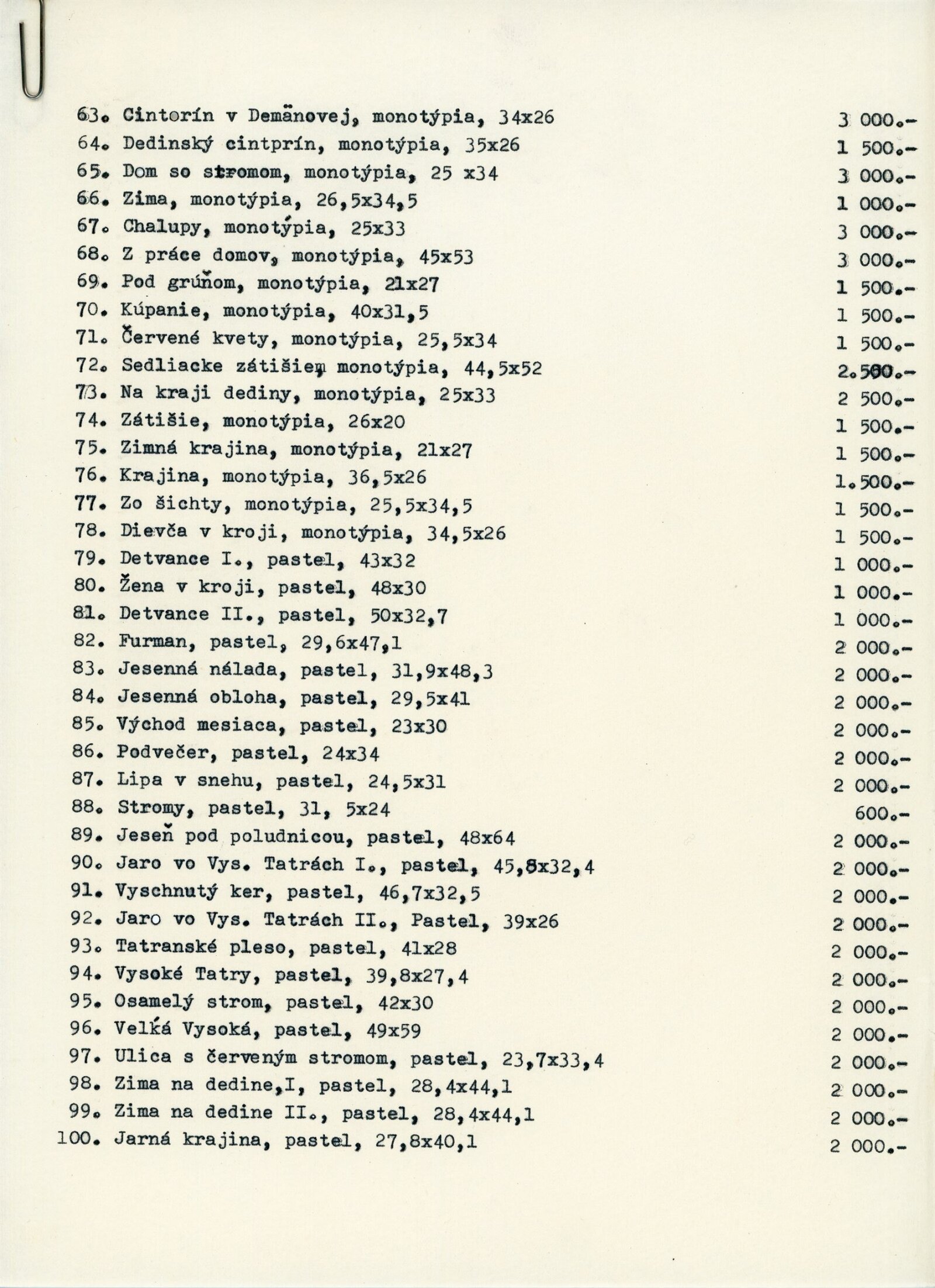 pozvánka, katalog převzatý z původní výstavy v Banské Bystrici, fotografie vernisáže a výstavy, seznam vystavených obrazů, text o umělci, zpráva o ukončení výstavy, revers, korespondence (E. Ricotti, dcera Martina Heřmanského), provozní korespondence, žádost o povolení výstavy, dohoda o pořádání výstavy, nabídka výstavy z OG Banská Bystrica, plakát Východoslovenská galéria Košice, recenze v tisku