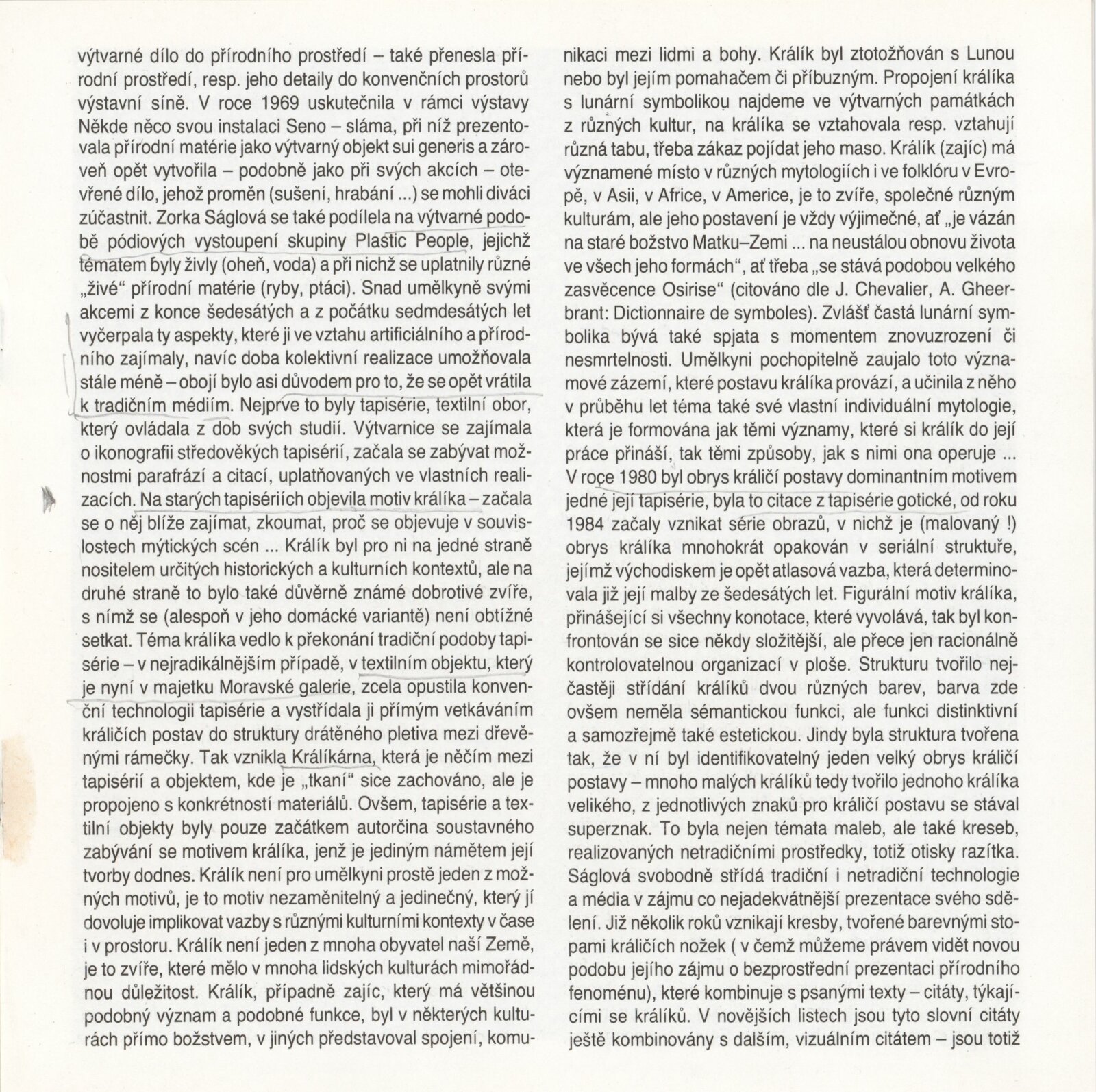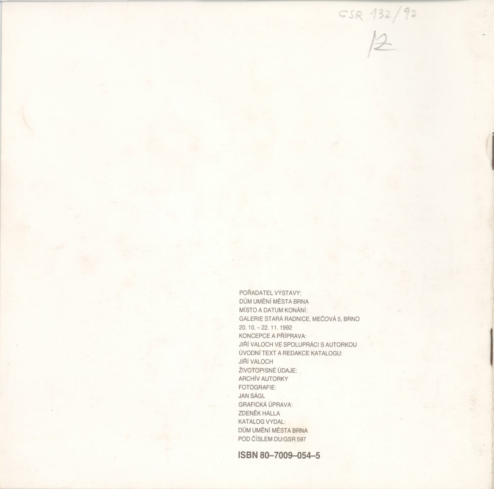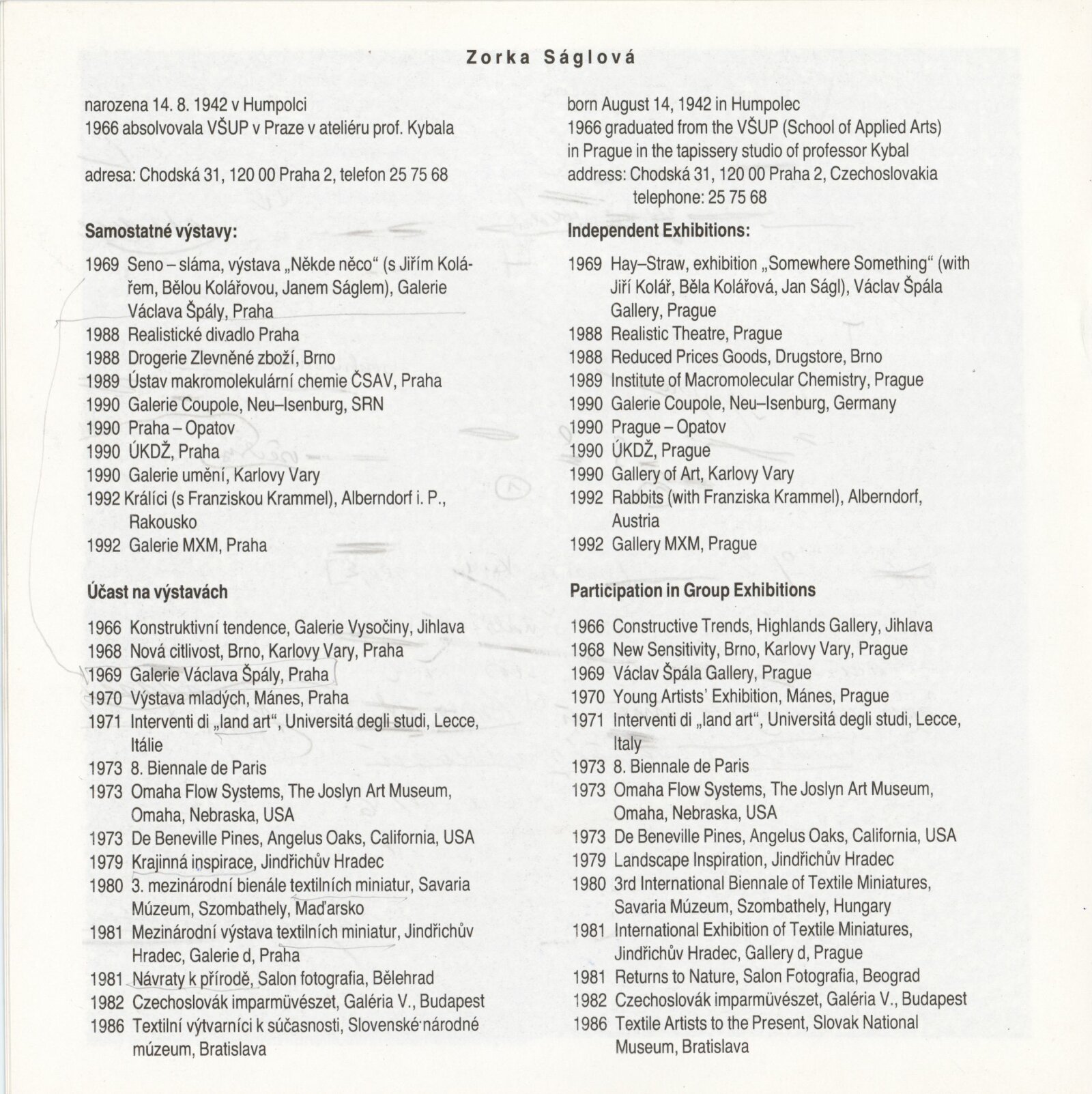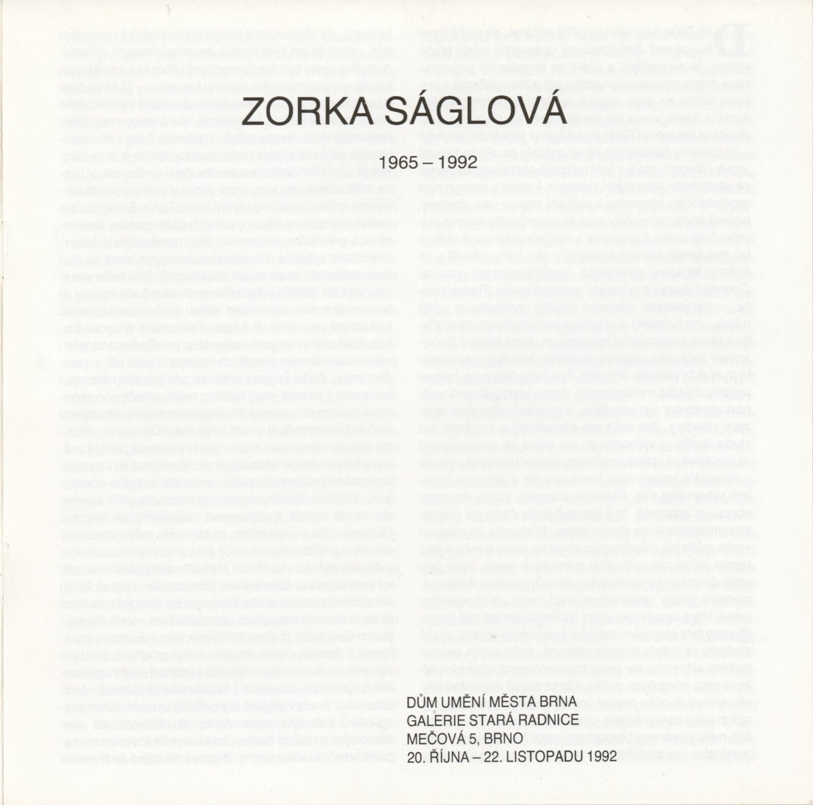 Zorka Ságlová. 1965–1992: Galerie Stará radnice 20. 10. – 22. 11. 1992 / Text Jiří Valoch. - Brno: DUmB, - [8] s., obr. Životní data, výstavy, zastoupení ve sbírkách, akce GSR 132; MG
